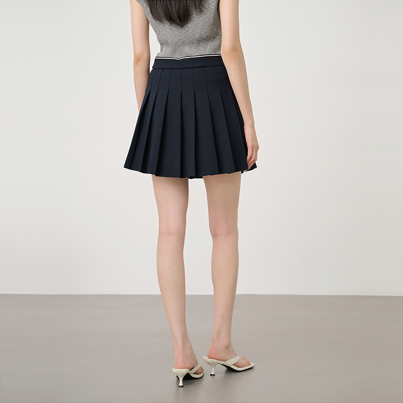 RUISHI芮时欧若风丁达尔裙仿真丝光泽感压褶半身裙女春秋 现货