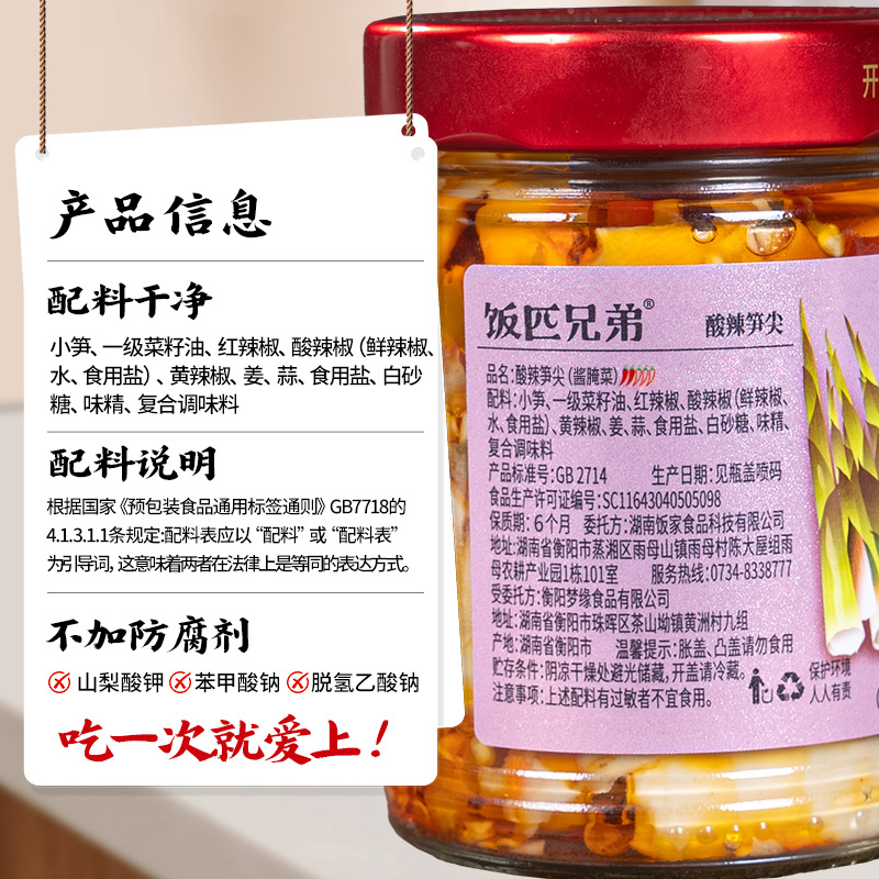 饭匹兄弟酸辣笋尖香辣下饭菜湖南特产剁椒高山小笋辣椒酱拌饭酱