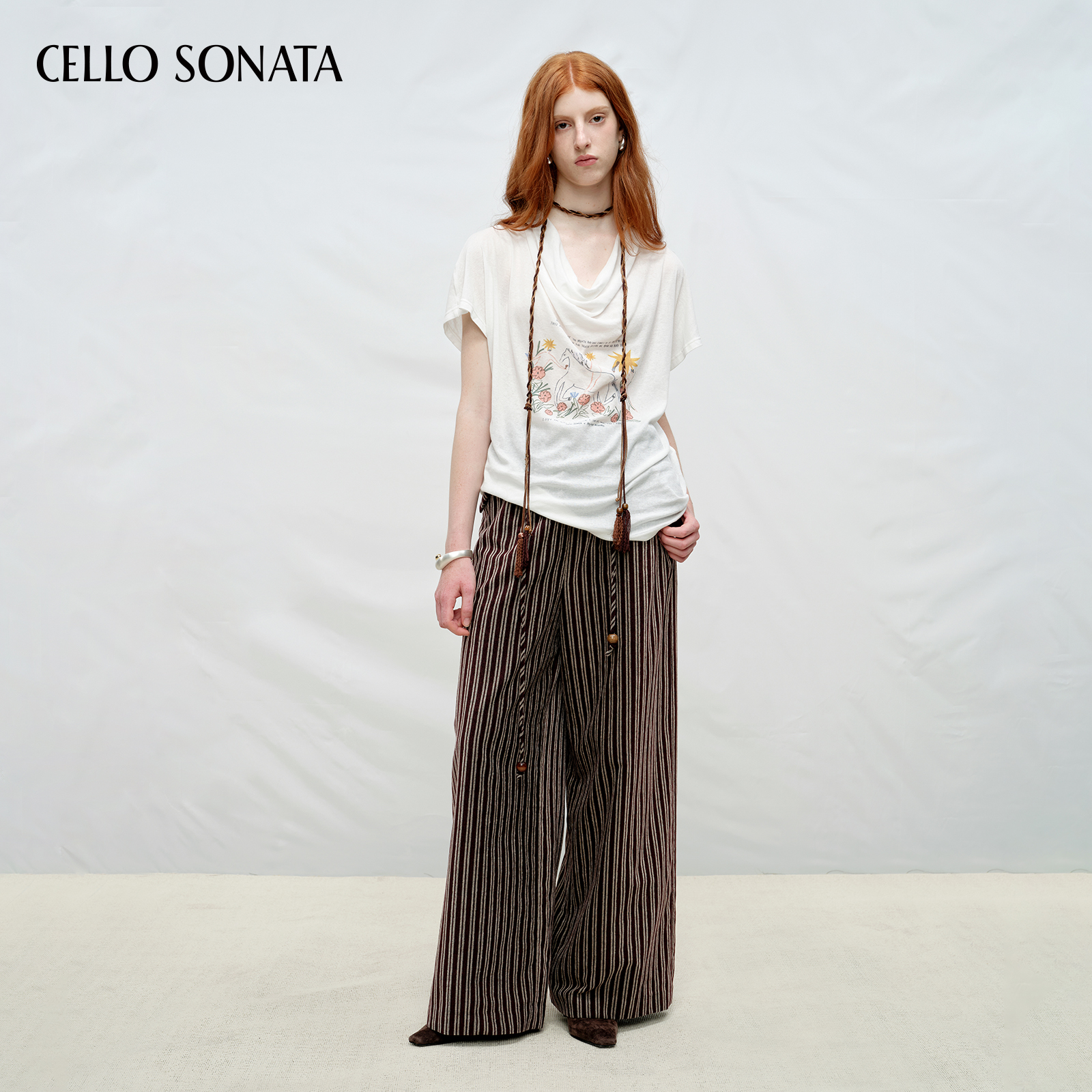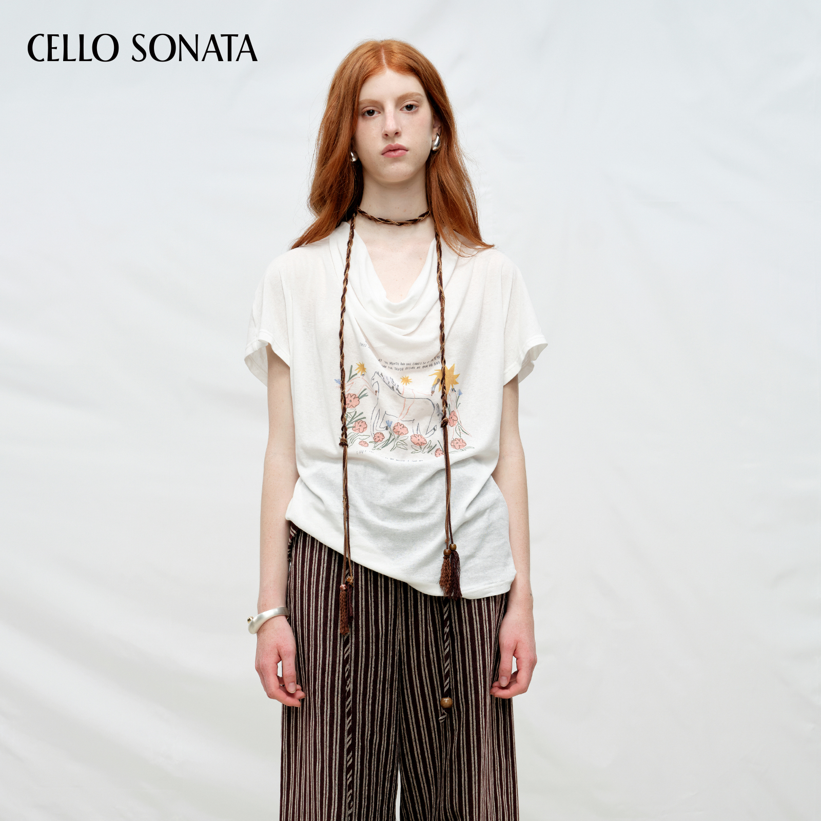 Cello Sonata艺术家联名系列设计感彩色小马印花荡领宽松T恤