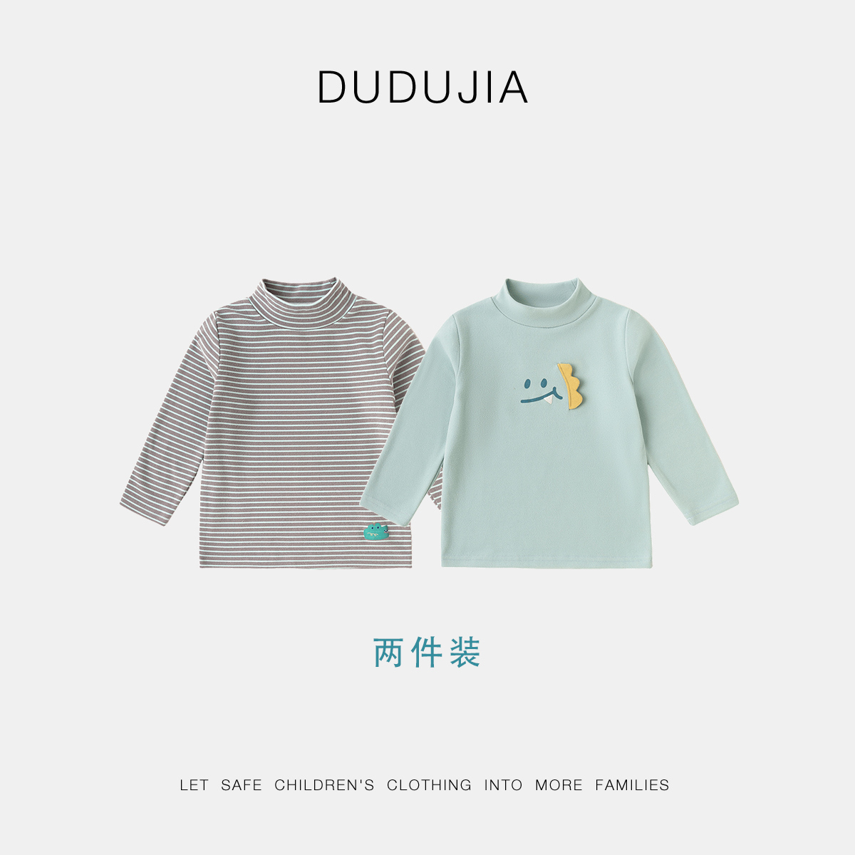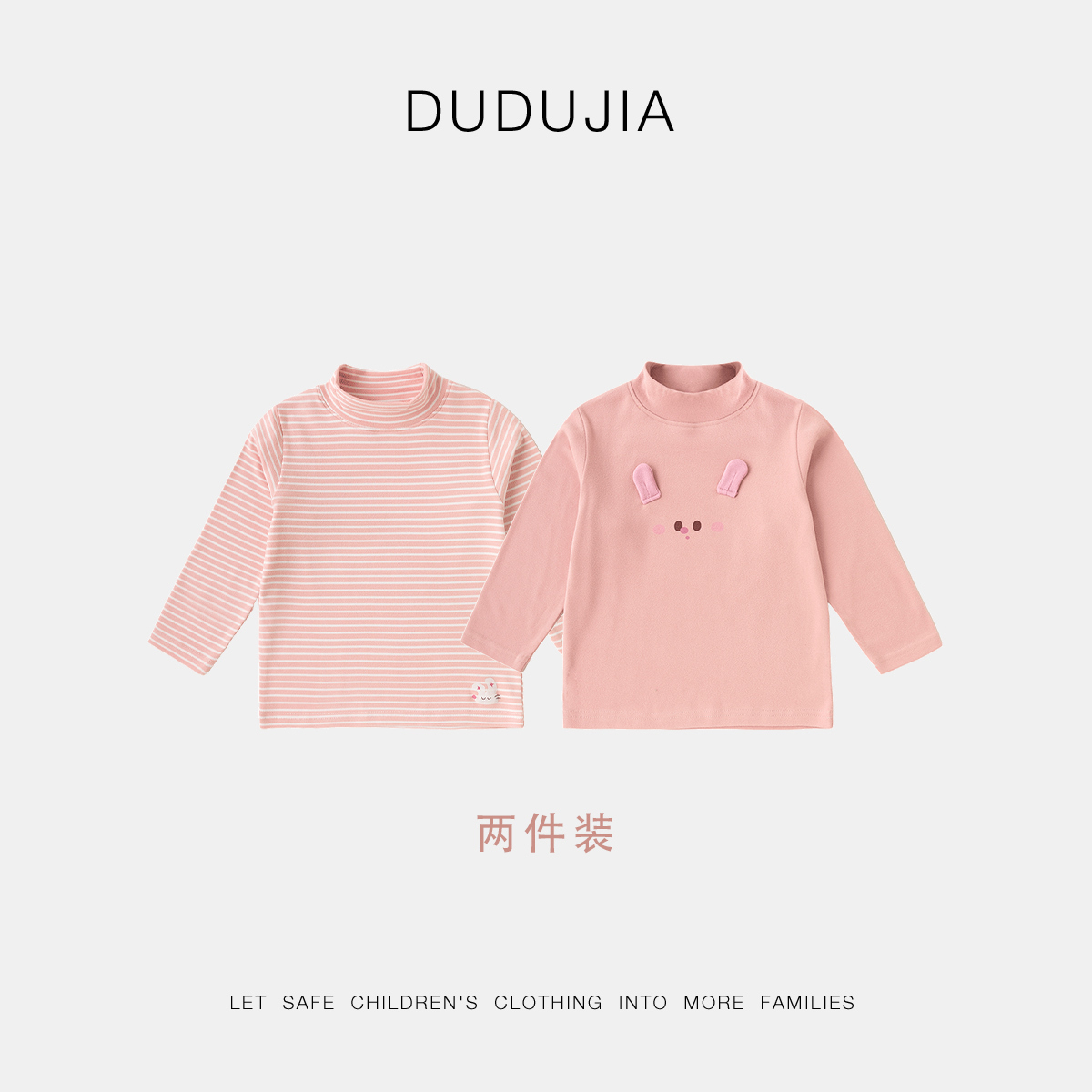 女童上衣新款 T恤男童打底衫 dudujia宝宝长袖 衣服儿童早秋 两件装