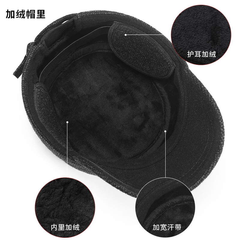 中老年人帽子男士 冬天爸爸加厚保暖鸭舌帽爷爷老头护耳平顶帽棉帽