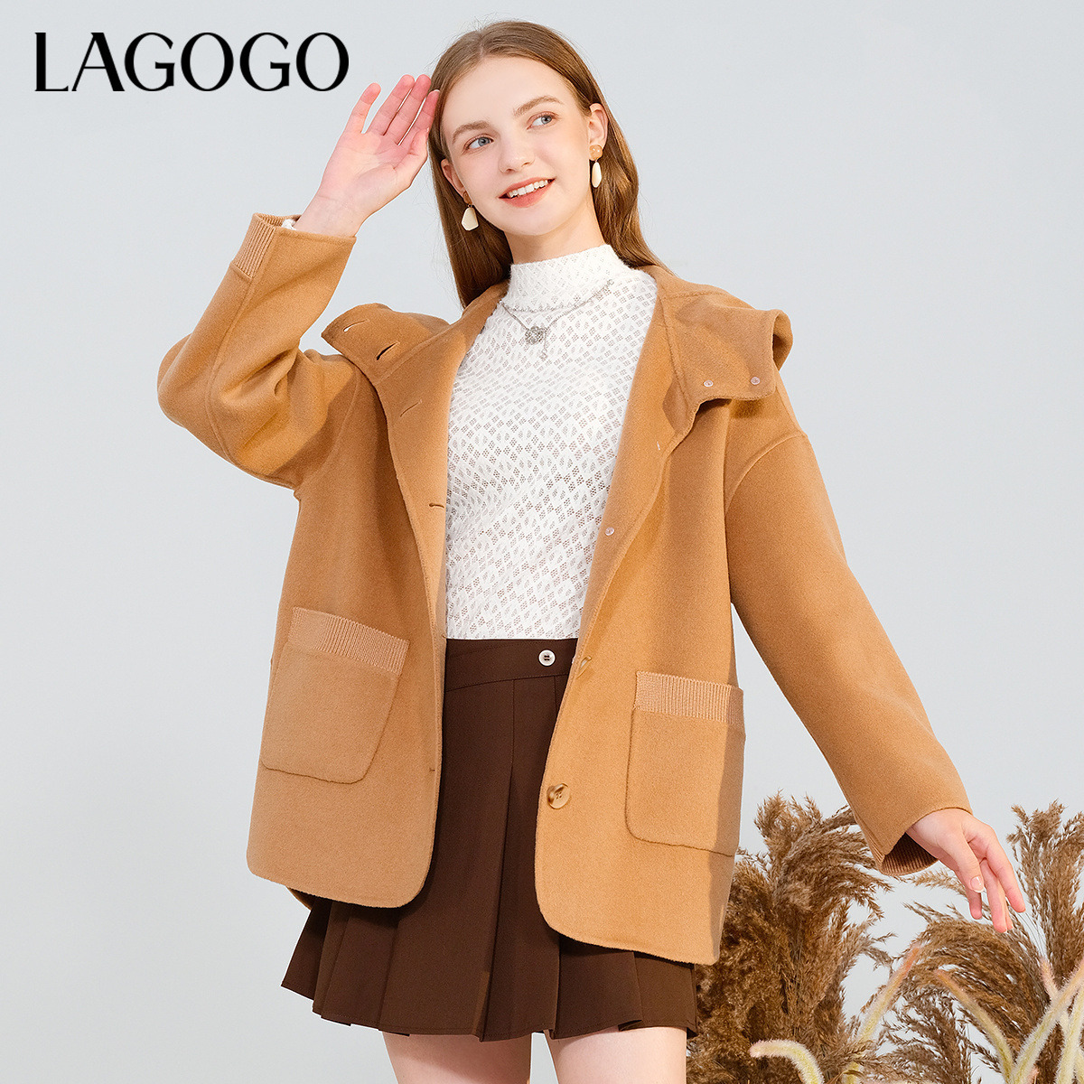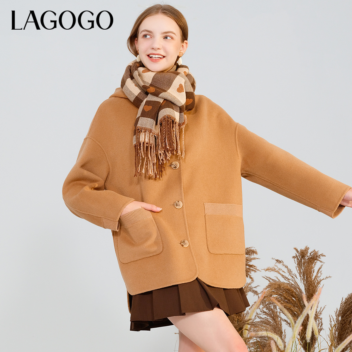 RUISHI芮时 重磅驼绒桑蚕丝羊毛慵懒两穿领毛呢大衣女秋冬外套女