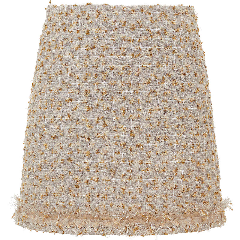 DAZZLE地素奥莱花纱半裙冬季 毛边设计气质半身裙女