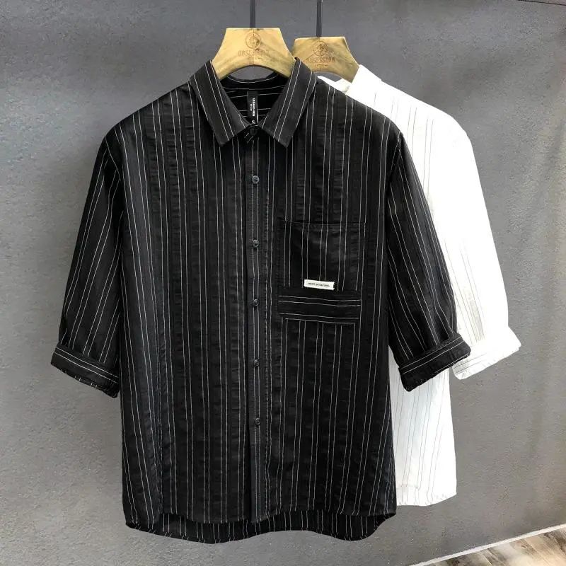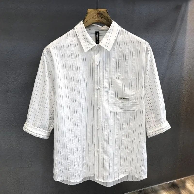 300斤高级感气质条纹短袖 七分袖 衬衫 夏季 宽松休闲衬衣2 男士 特大码