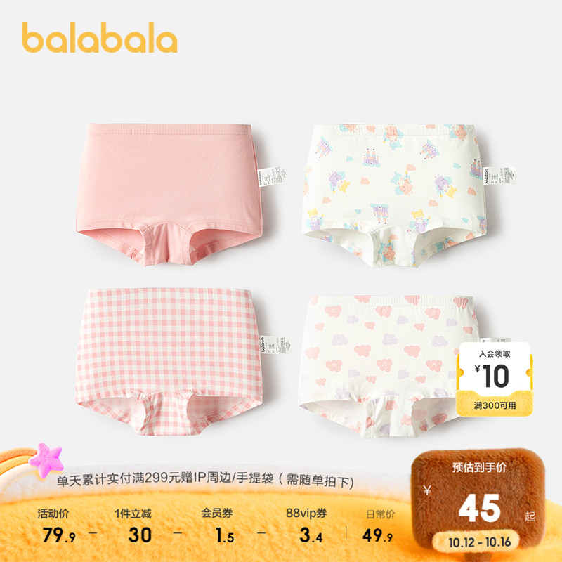 小童宝宝弹力舒适亲肤甜美四条装 巴拉巴拉女童内裤 棉平角儿童短裤