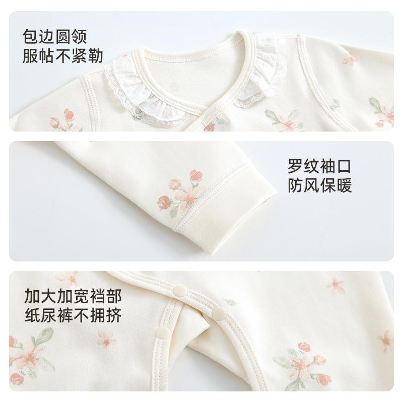 柠檬爬爬新生婴儿连体衣春秋款 纯棉女宝宝哈衣和尚服甜美花韵轻吟