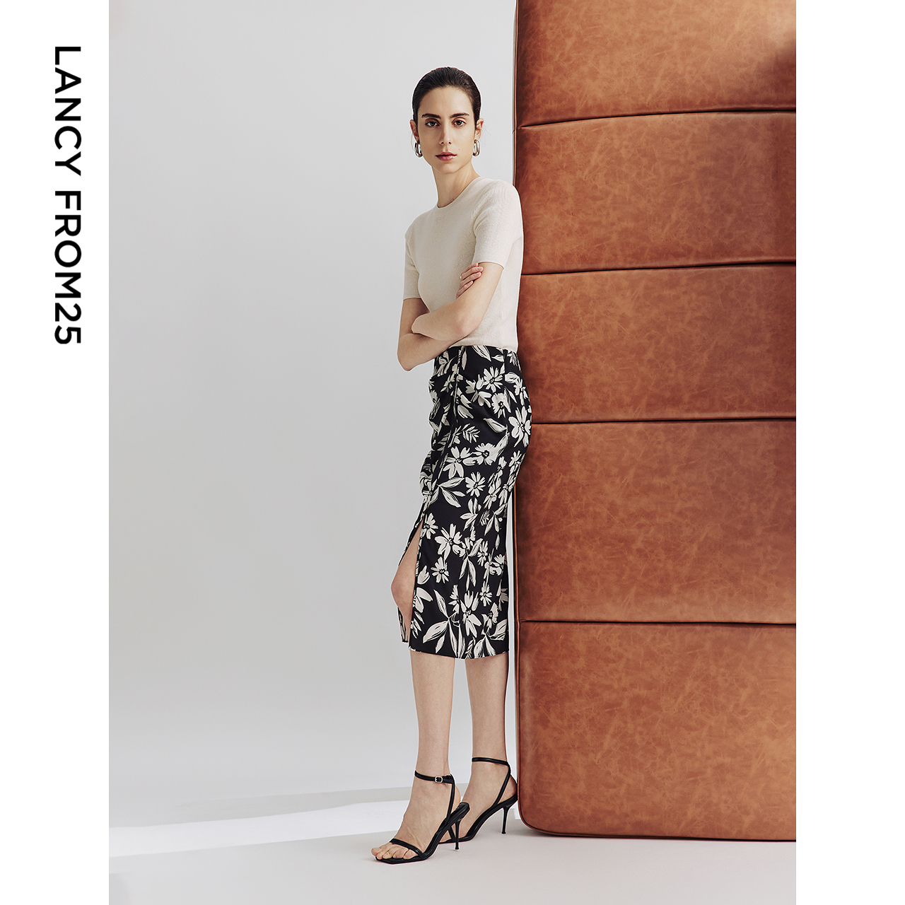 珂莱蒂尔冬优雅气质细支羊毛A字裙半身裙女半裙 免定金