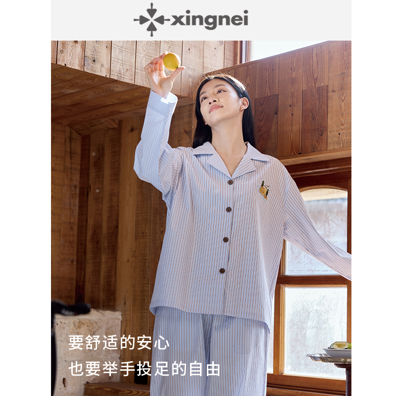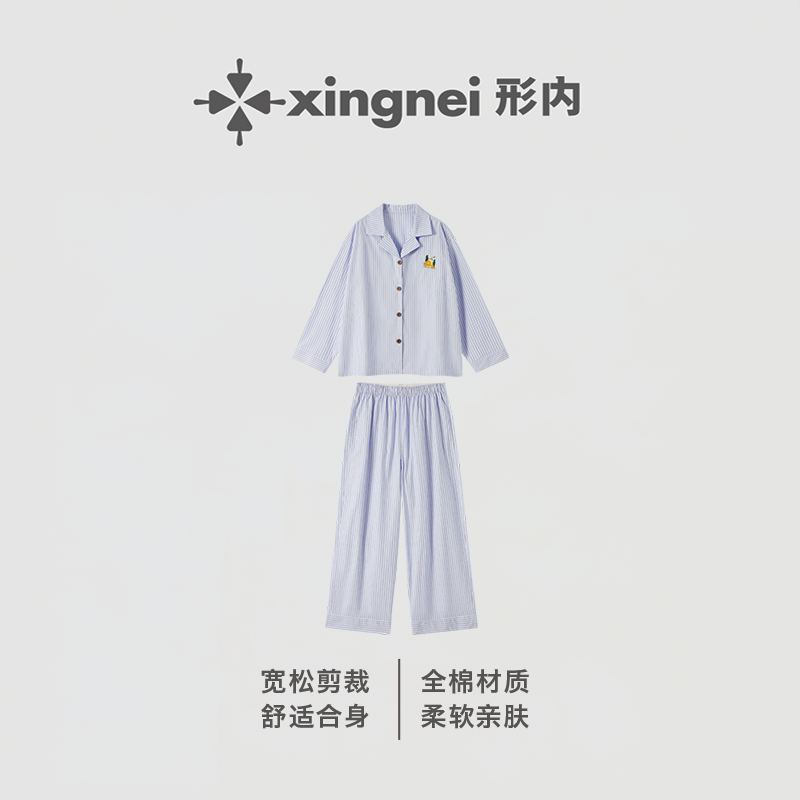 开衫 形内睡衣女套装 春秋季 2025新款 家居服 古巴领纯棉条纹春秋款