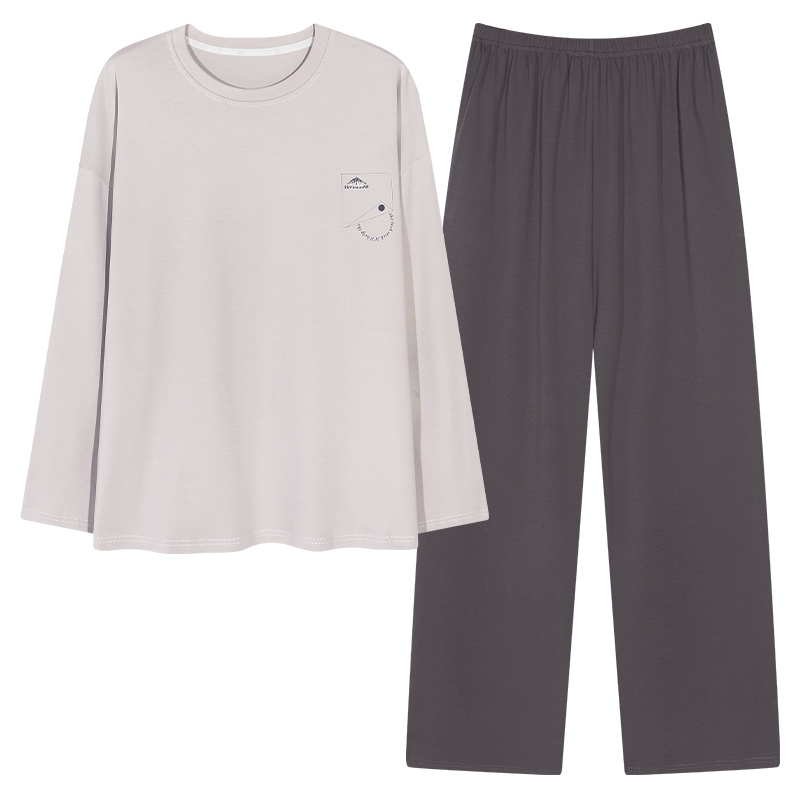 休闲可外穿高级感纯色家居服套装 猫人睡衣男士 长裤 纯棉长袖 春秋季