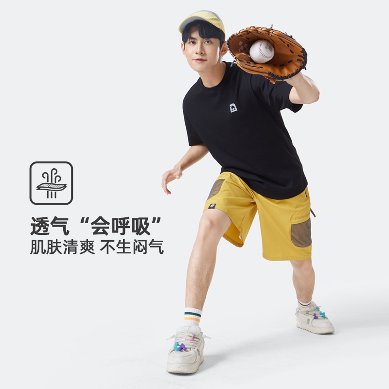 上衣 半袖 骆驼男装 T恤男运动夏宽松透气凉感纯棉纯色圆领重磅短袖