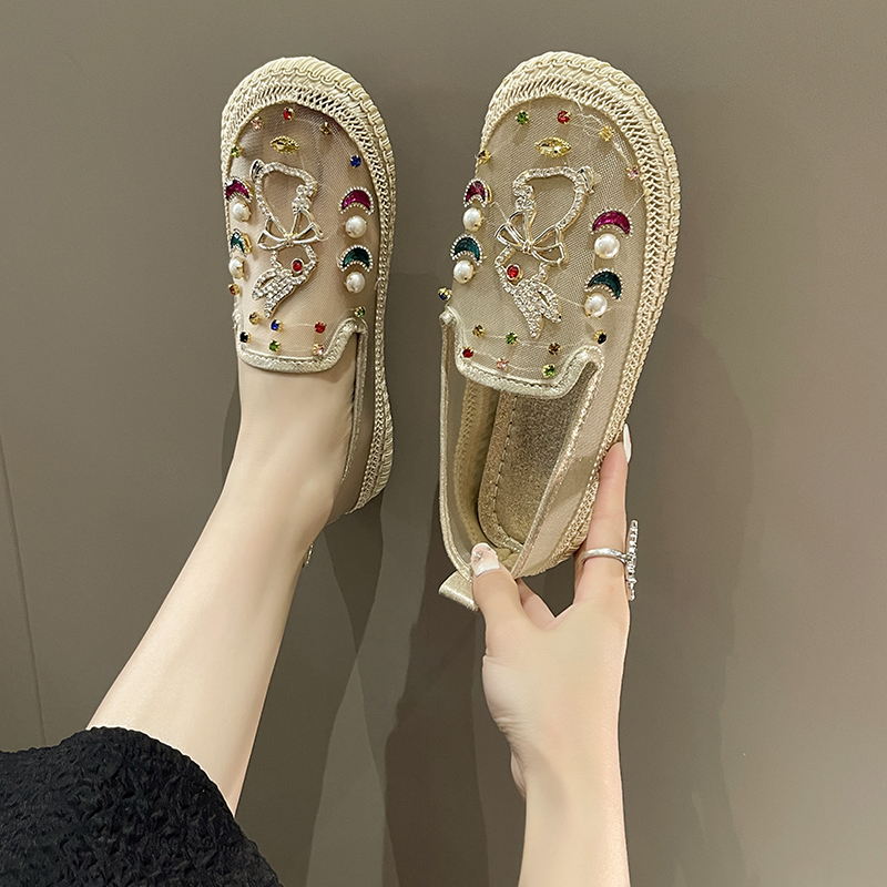 绝美气质通勤平底鞋 小个子内增高裸色方扣浅口单鞋 女2025春夏新款