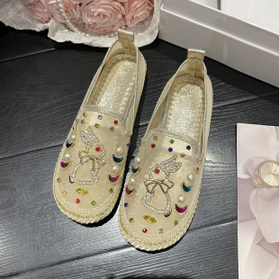 温柔风配裙子豆豆鞋 新款 女2024秋季 星期六真皮平底蝴蝶结浅口单鞋