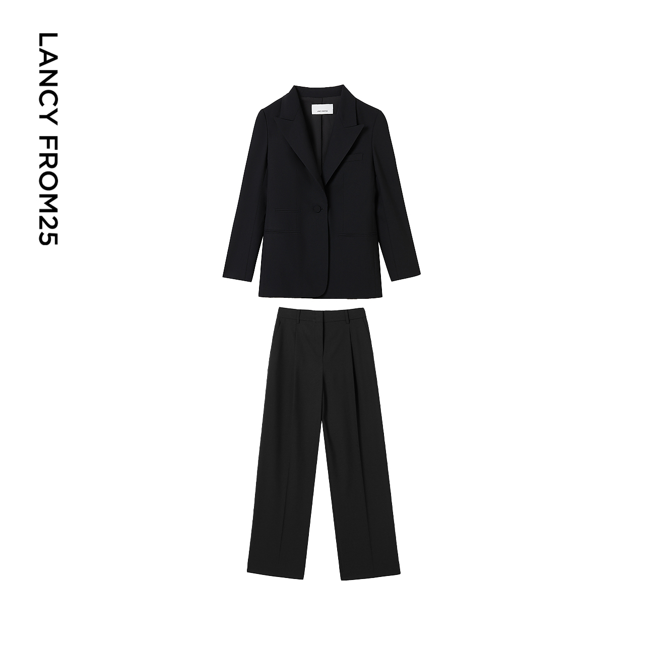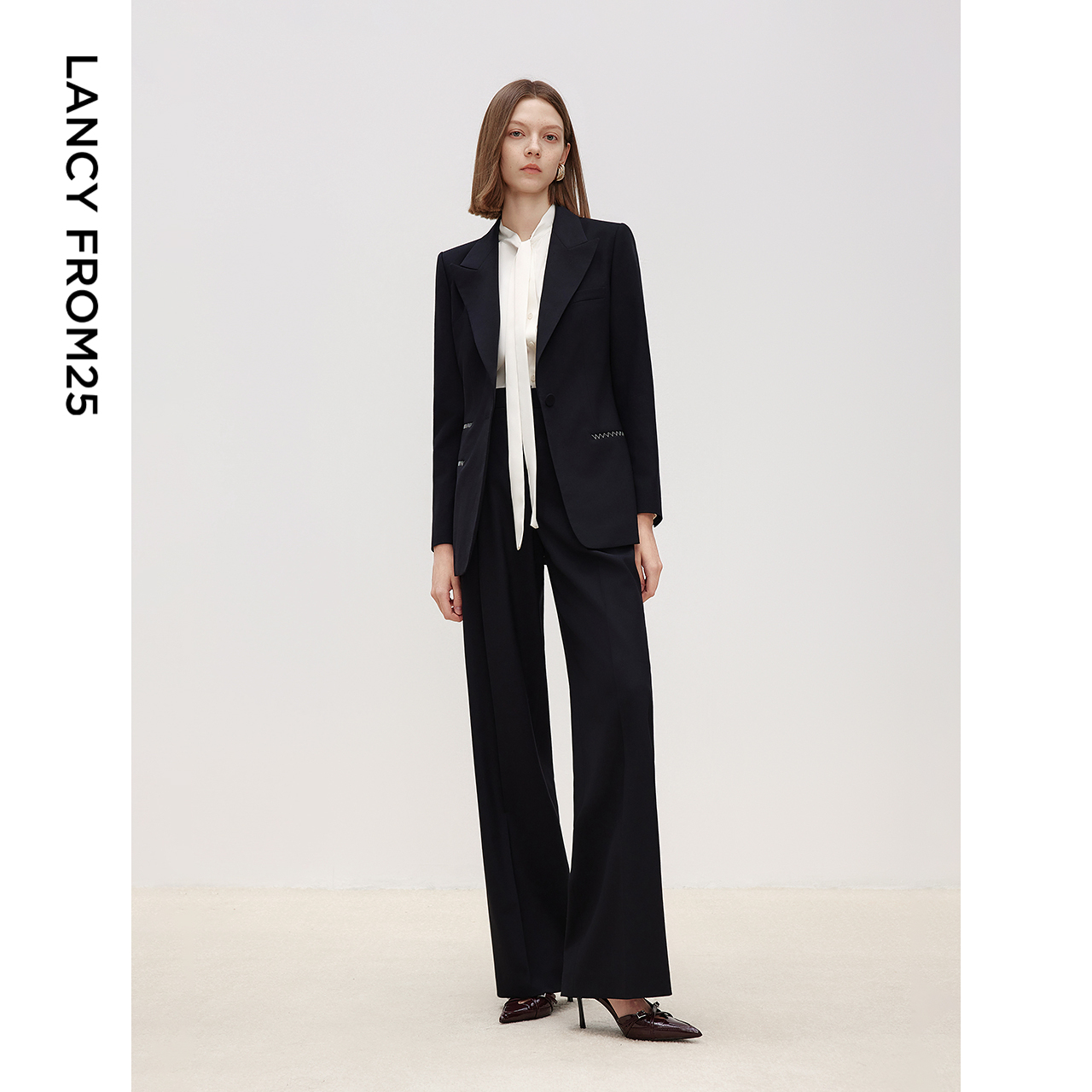 黑色西装 朗姿羊毛西服职业外套上衣气质高级感复古2025年春季 新款