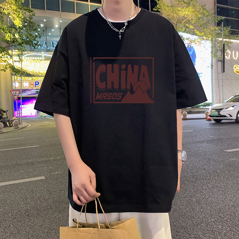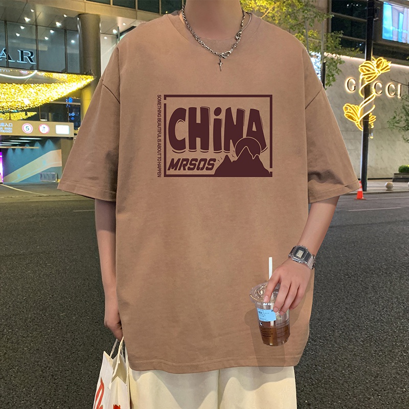 国潮宽松半袖 新款 港风chic高街潮牌ins上衣 t恤男夏季 重磅纯棉短袖