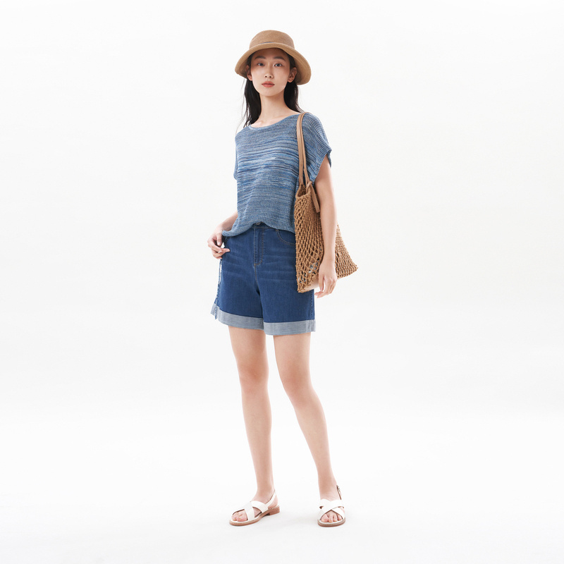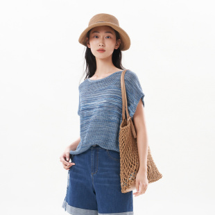 专柜同款 宽松短款 Yifini 套头针织衫 上衣 易菲定制花纱蝙蝠袖