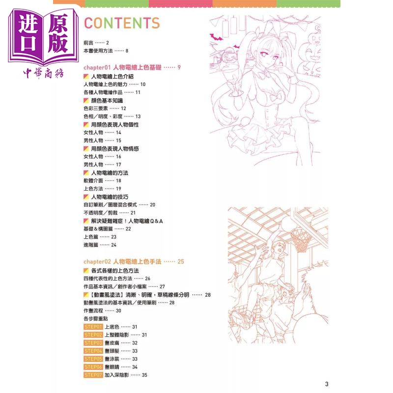 港台艺术原版 动漫人物上色技巧 羊毛兔 三悦文化出版 预售 中商原版 职人电绘
