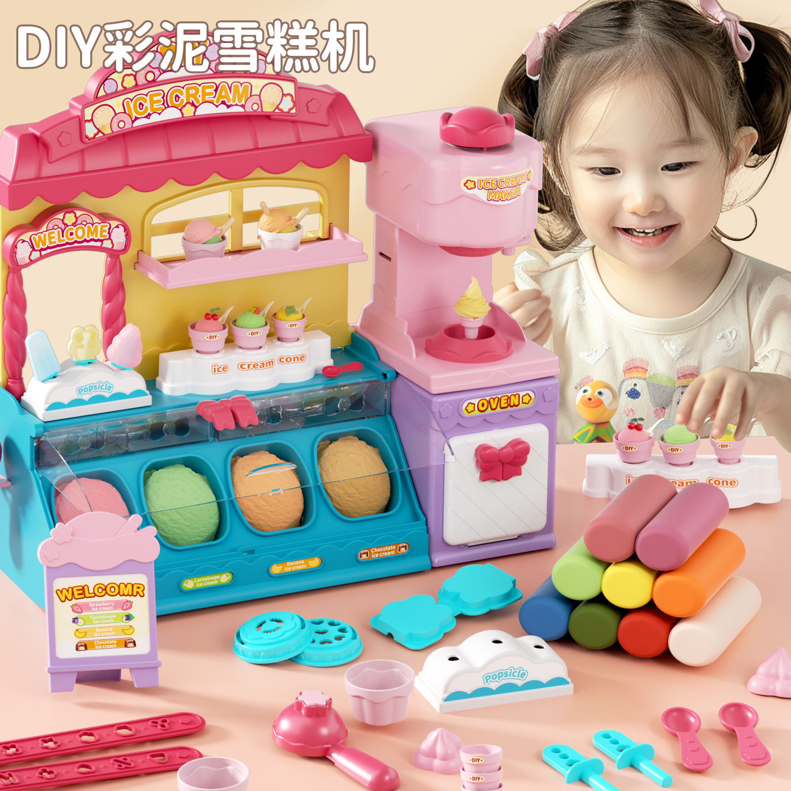 儿童彩泥冰淇淋机橡皮泥模具工具套装 粘土雪糕店男女孩过家家玩具