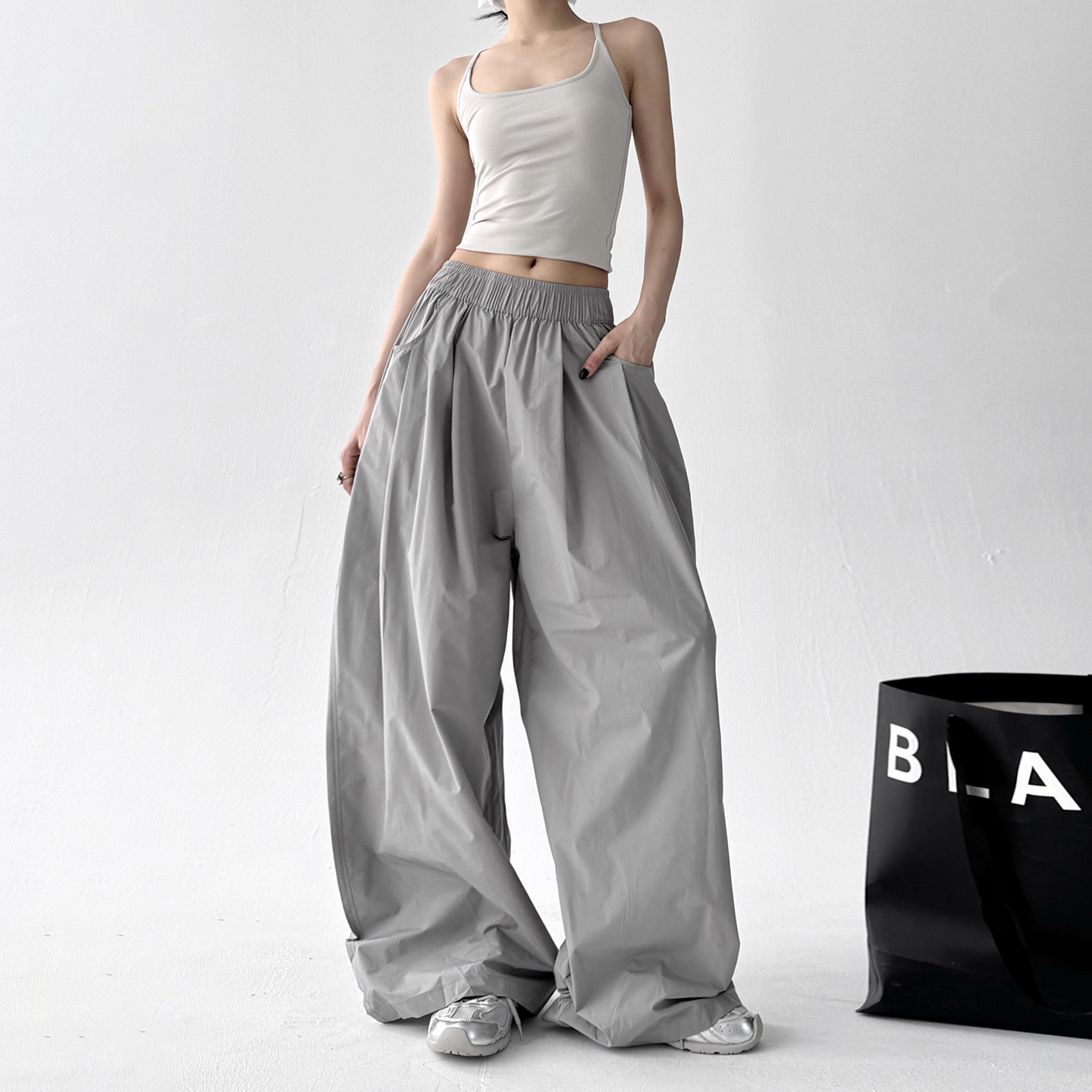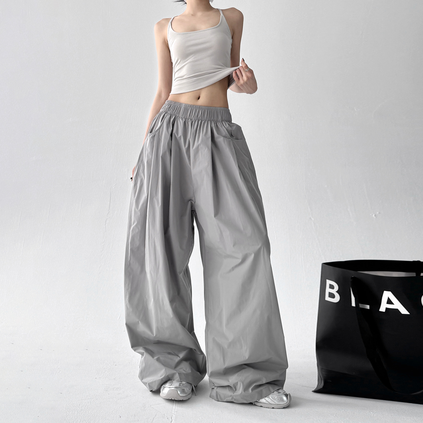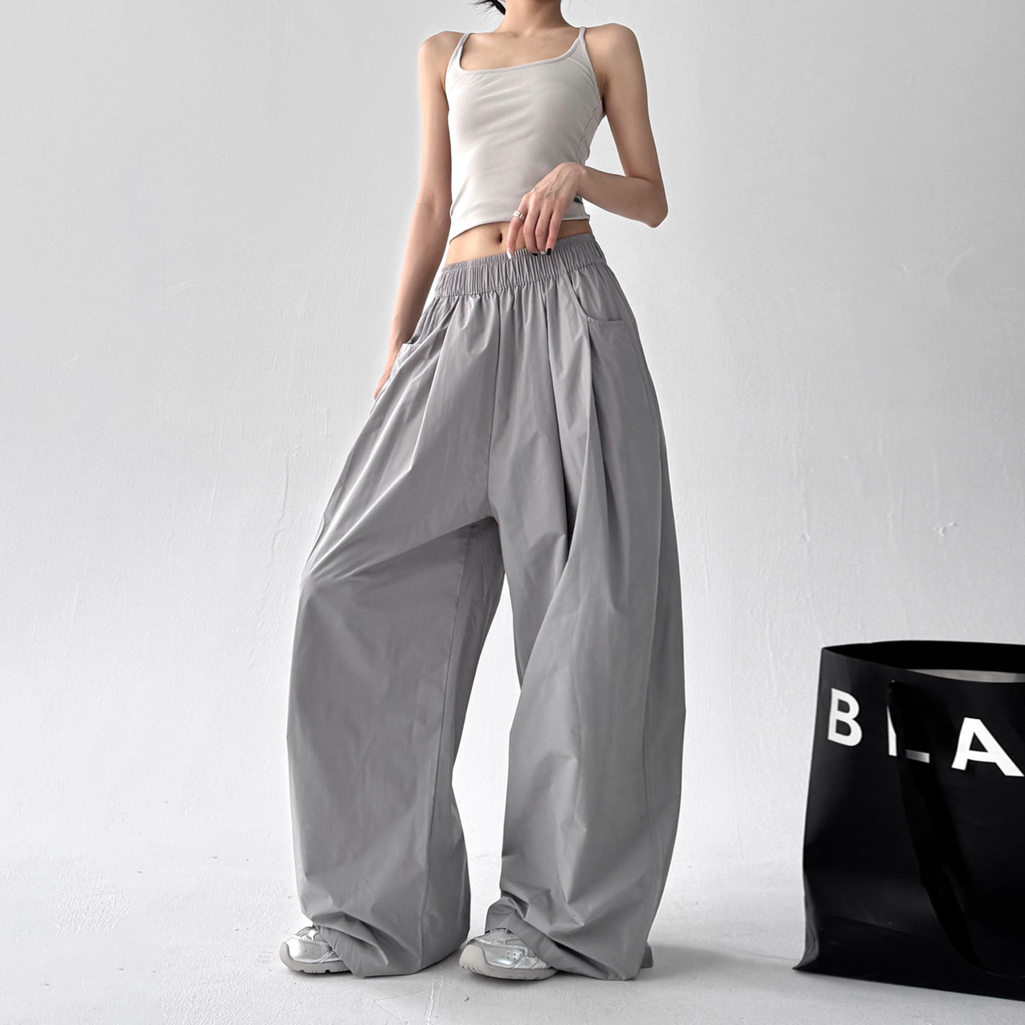 2025秋季 新款 运动拖地裤 垂感显瘦休闲裤 弯口袋糯米阔腿裤