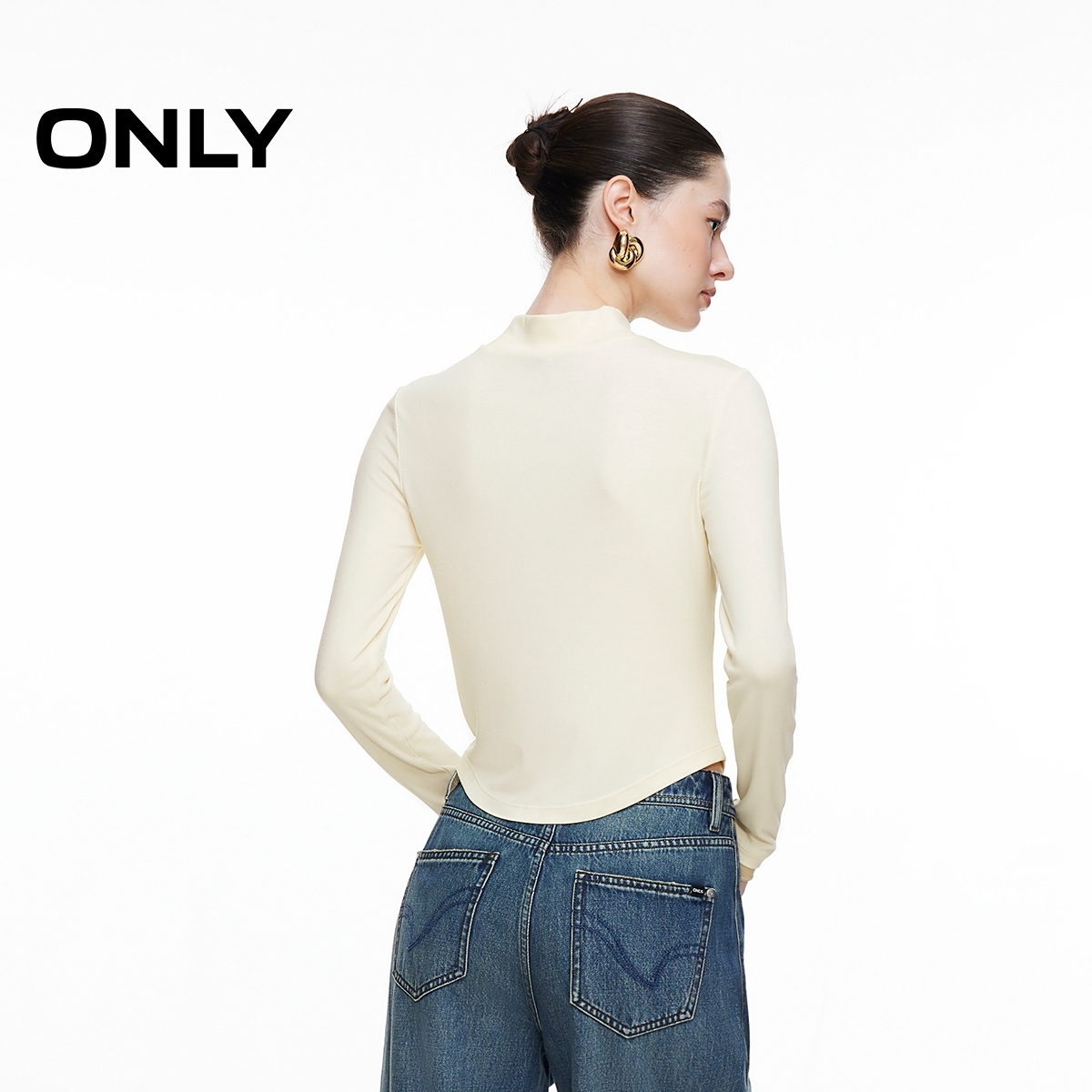 ONLY2025秋季 保暖抑菌亲肤远红外面料收腰剪裁半高领打底T恤 新款