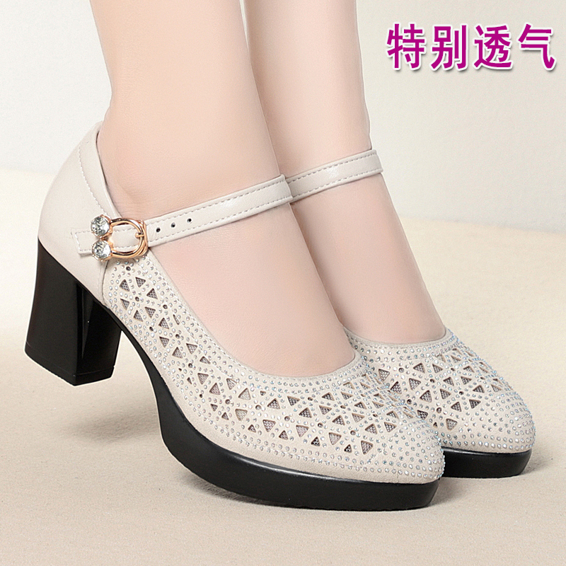 女夏季 厚底舞蹈鞋 不累脚透气女鞋 单鞋 镂空女士凉鞋 真皮走秀高跟鞋