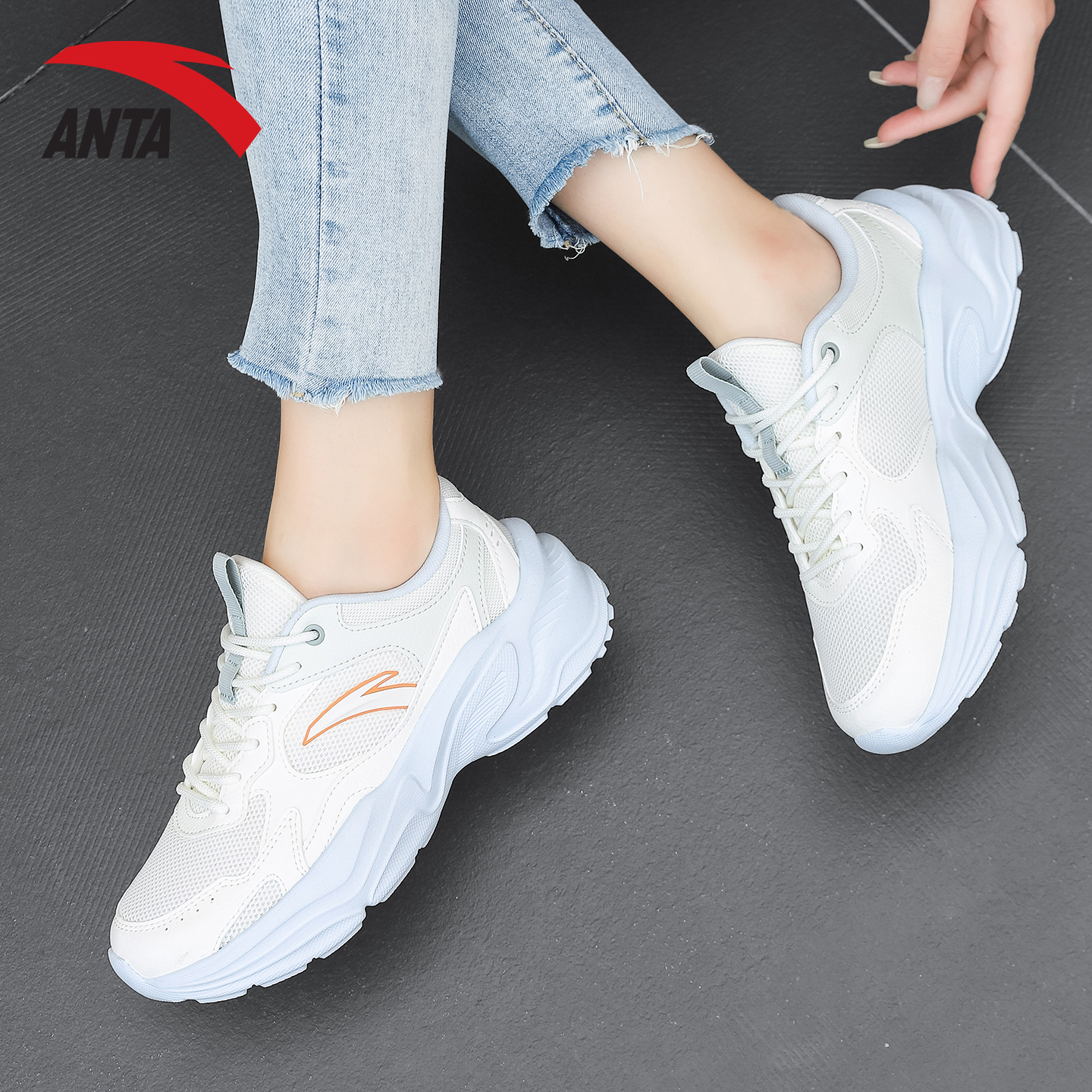 鞋 子休闲鞋 时尚 安踏女鞋 运动鞋 正品 百搭老爹鞋 女 小千禧透气网面鞋