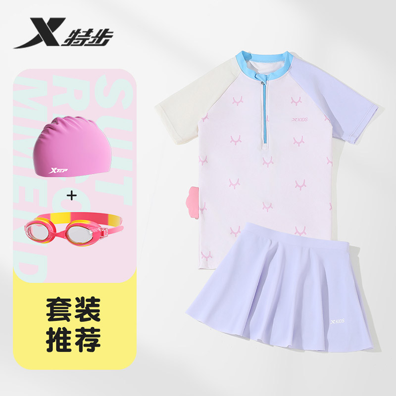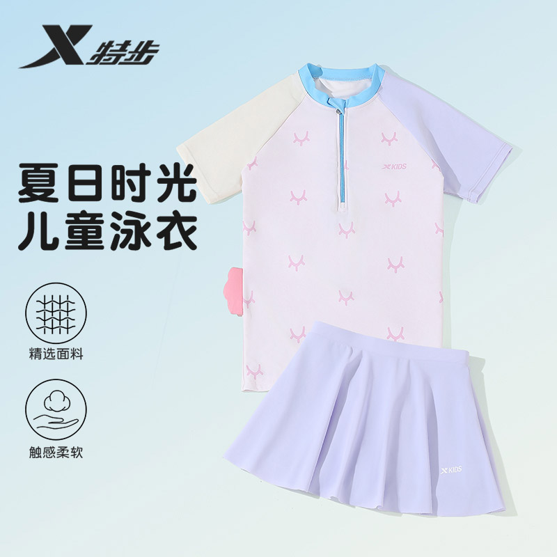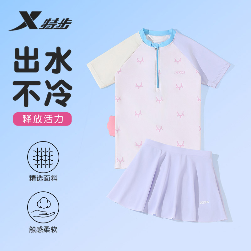 公主风女童中大童游泳防晒速干游泳分体套装 特步儿童泳衣夏季 新款