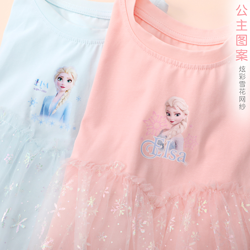 宝宝迪士尼女孩衣服 2025新款 艾莎公主儿童t恤女童短袖 T恤上衣夏装