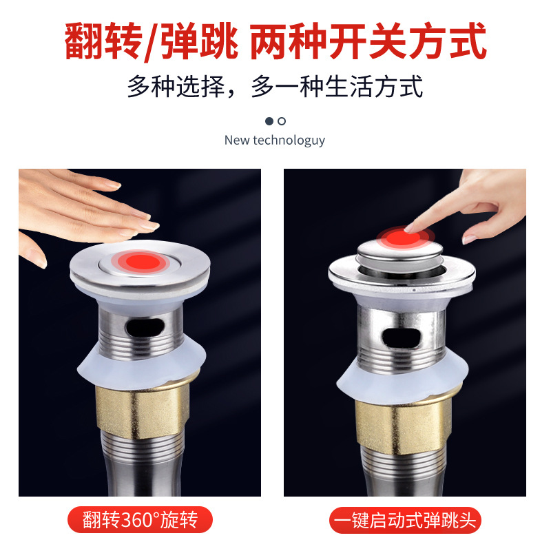 洗脸盆下水器面盆台盆水盆弹跳芯按压式 洗手池翻板漏水防臭塞配件