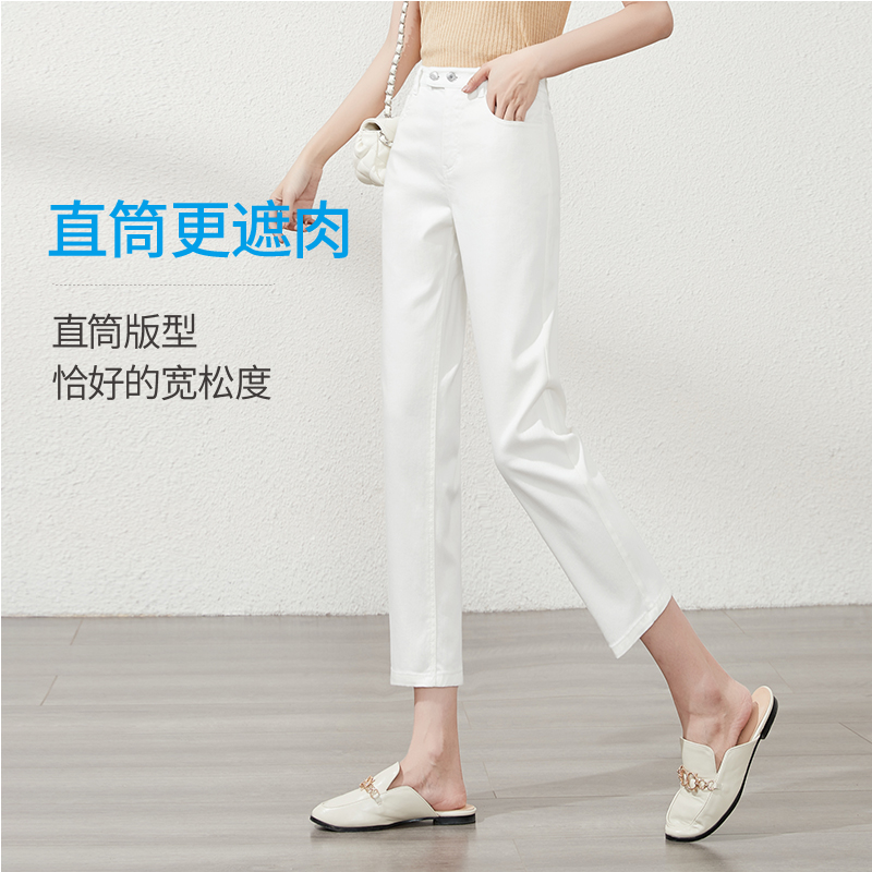 显瘦牛仔长裤 热风女士直筒牛仔裤 翻边直筒修身 新款 子 2025年秋季