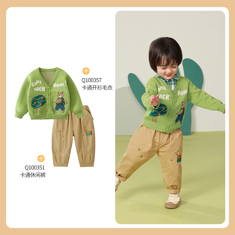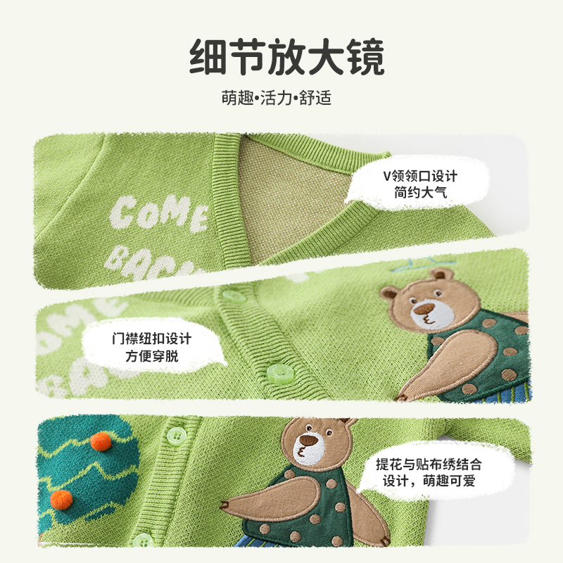 儿童毛衣秋装 齐齐熊宝宝针织开衫 男童针织衫 2023新款 纯棉春秋薄款
