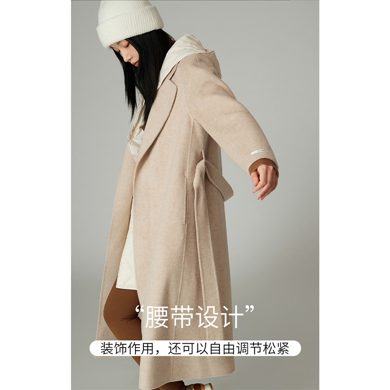 RUISHI芮时 重磅驼绒桑蚕丝羊毛慵懒两穿领毛呢大衣女秋冬外套女
