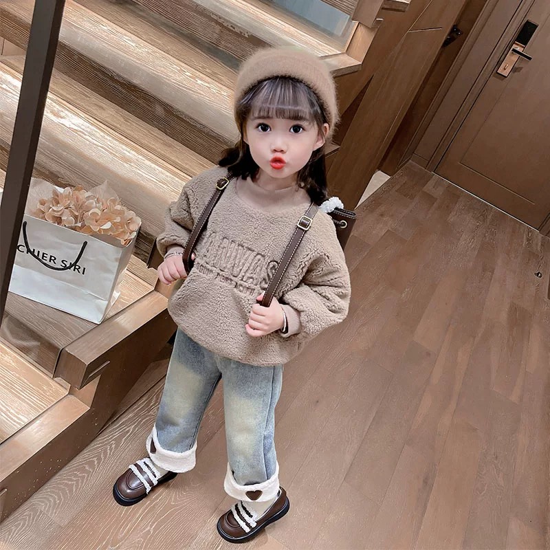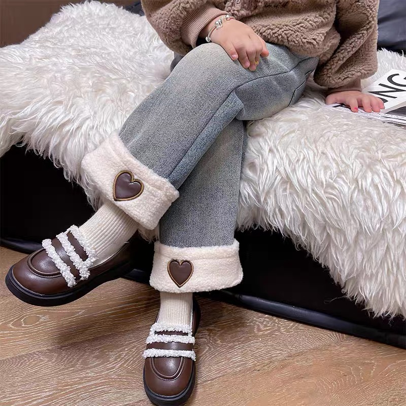 加绒加厚直筒裤 百搭裤 女宝宝保暖阔腿裤 童装 子 牛仔裤 女童洋气冬装