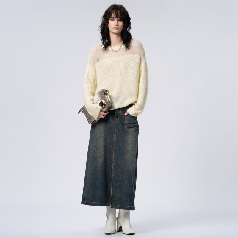 TI浅黄色海马毛毛衫 新款 女装 温柔风垂坠感上衣尤缇2023秋季 时尚