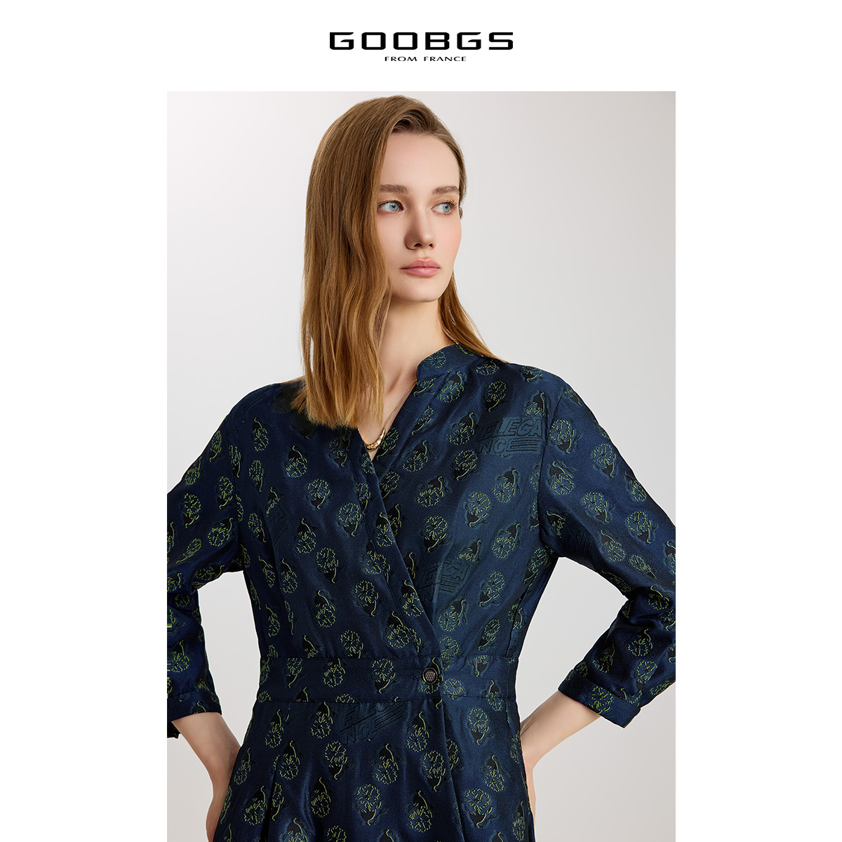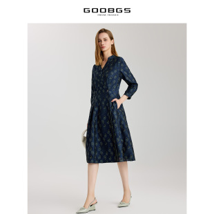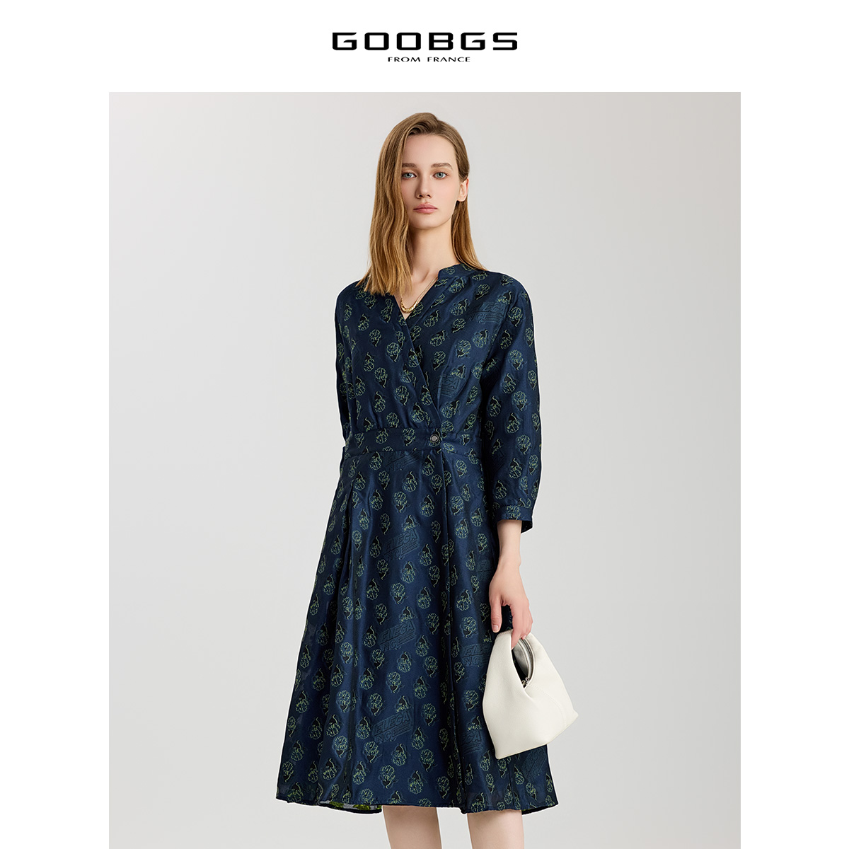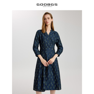 高级感miu系收腰学院风百褶裙子 秋季 法式 初恋灰色v领连衣裙女长袖