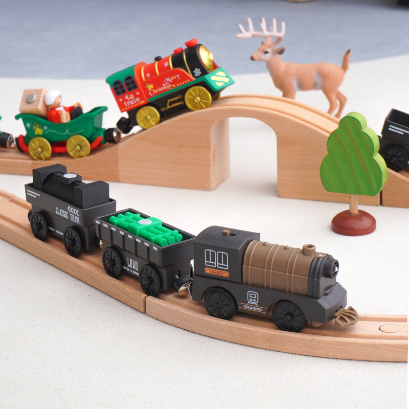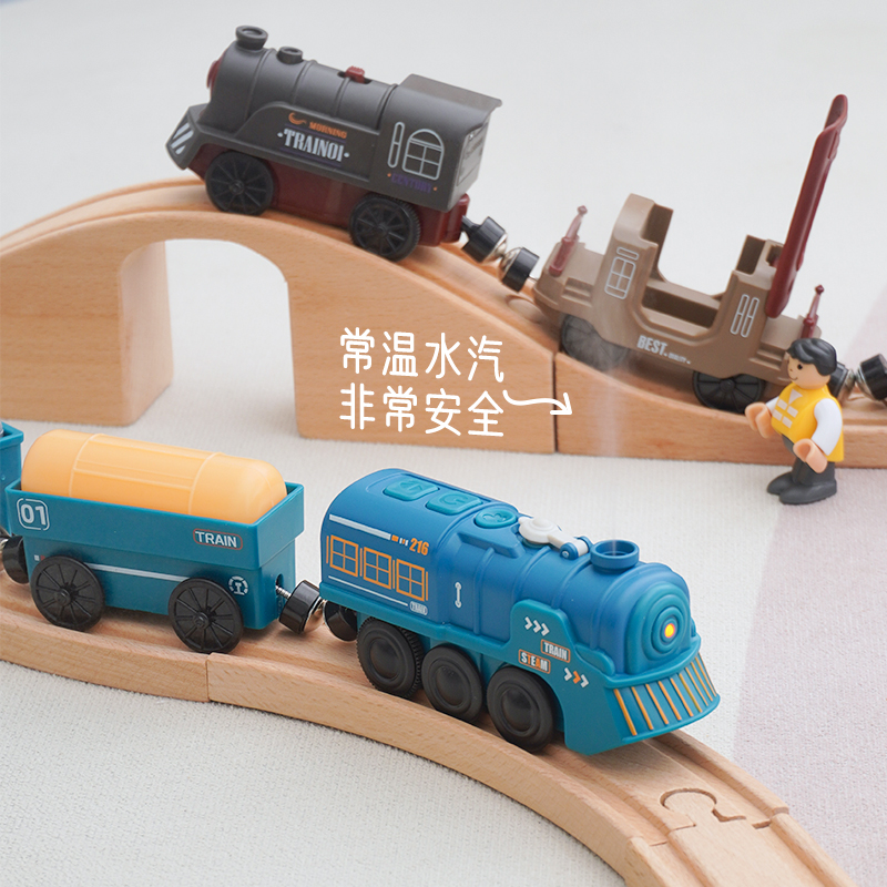 勒酷积木电动小火车轨道套装 磁性火车头男孩木制儿童玩具兼容HAPE