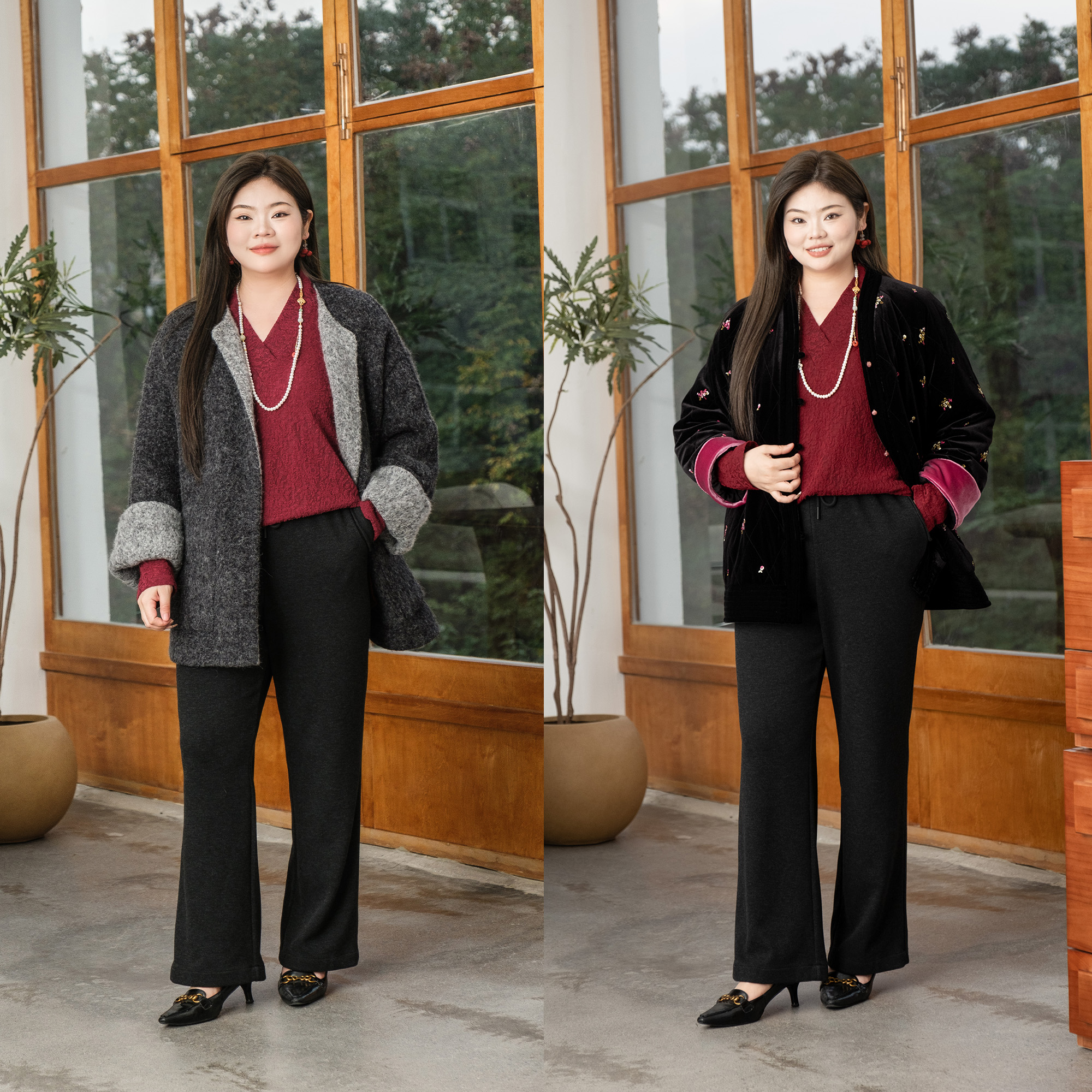 女大码 流行加厚宽松气质直筒裤 美丽客栈秋冬新款 女装 观想空间