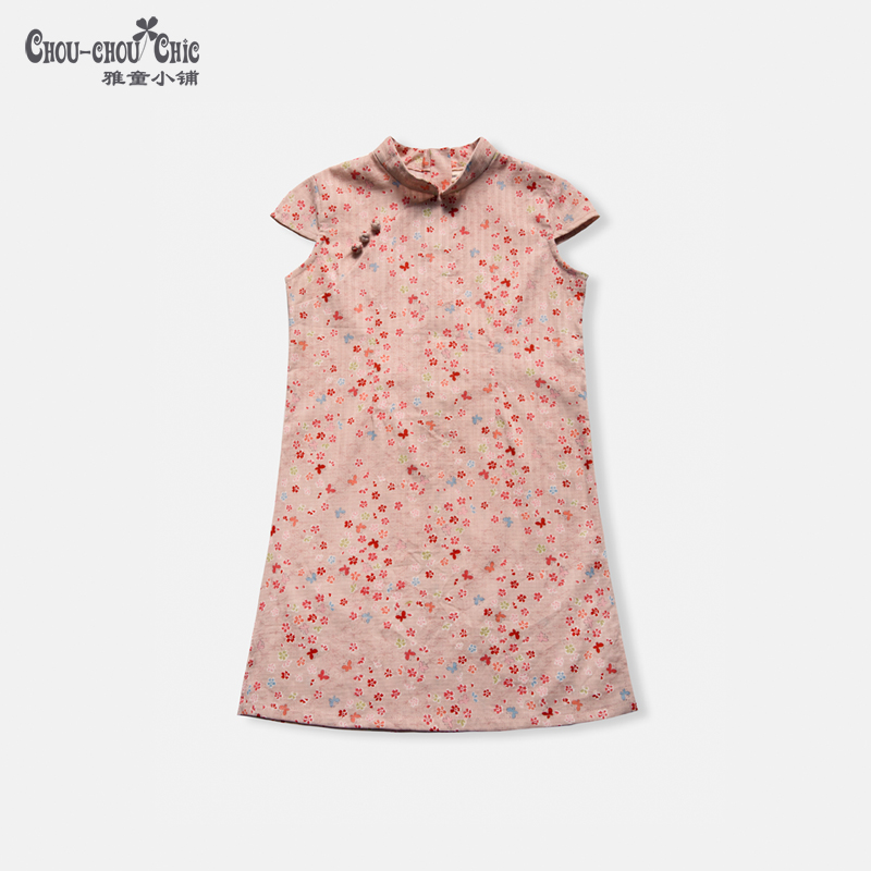 夏季 旗袍25新款 复古连衣裙儿童裙 女童全棉碎花短袖 雅童小铺