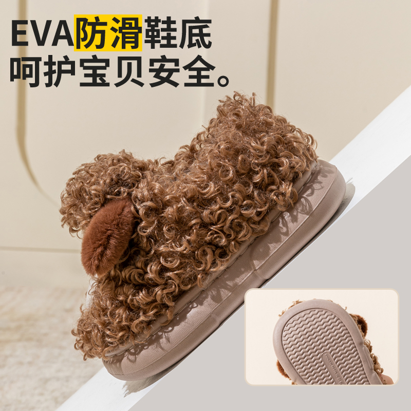 女孩 包跟可爱男童室内家居保暖加厚加绒中大童棉鞋 冬季 儿童棉拖鞋