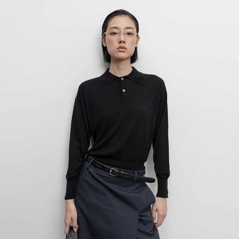 B405 早秋套头衫 322WORKHOUSE丝羊绒针织Polo领打底衫 女2024新款