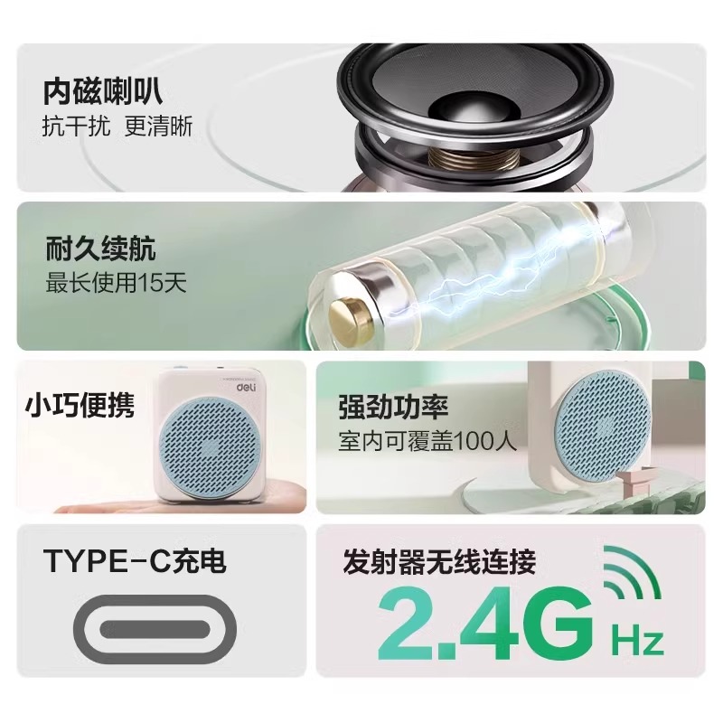 得力小蜜蜂扩音器教师专用无线麦克风上课导游小喇叭扬声器扩音机