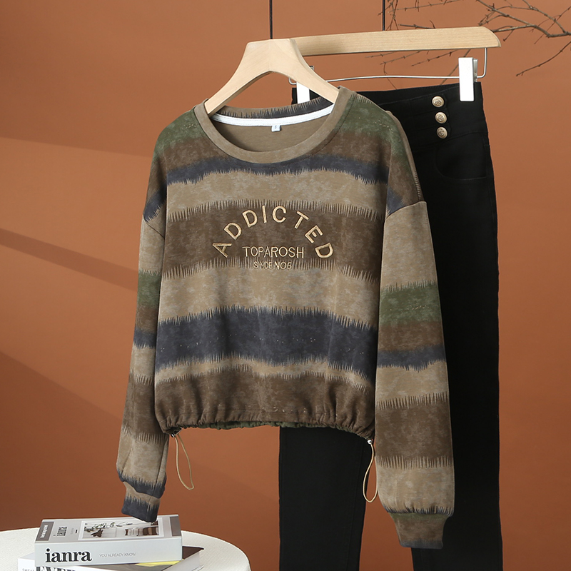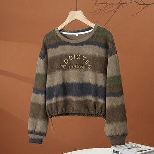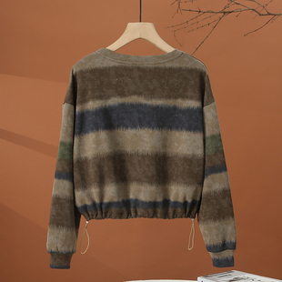 小个子抽绳收腰显瘦短款 秋季 上衣 套头条纹卫衣女春秋2025新款 长袖