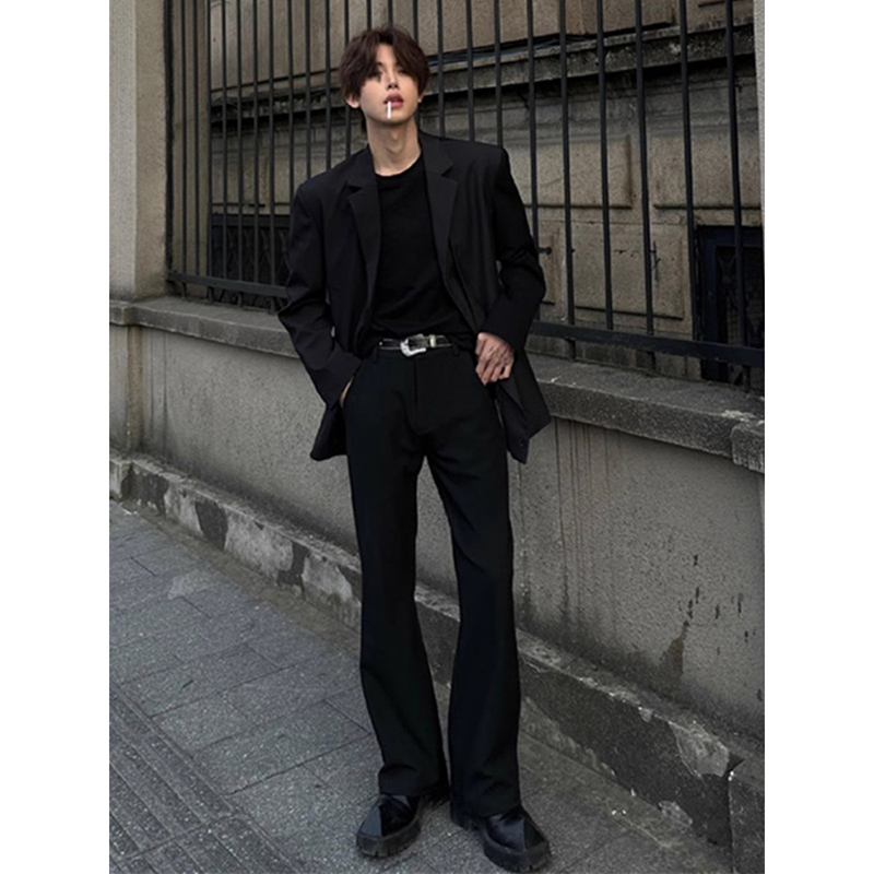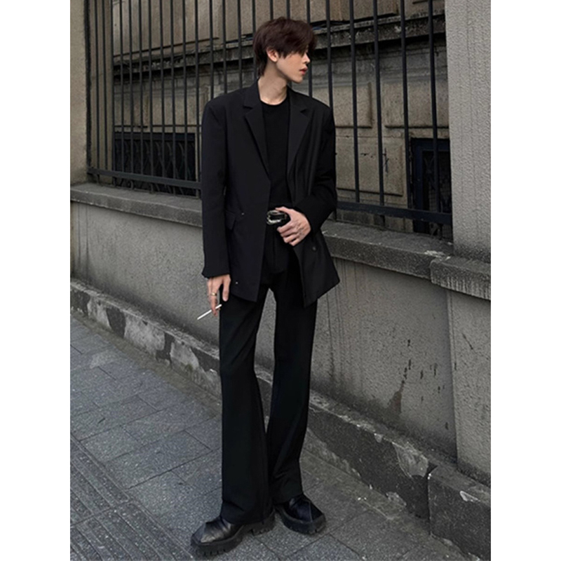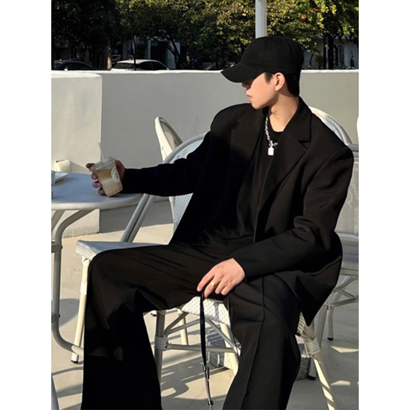 英伦雅痞韩版 高级感套装 垫肩西服外套 发型师潮牌男装 黑色dk小西装