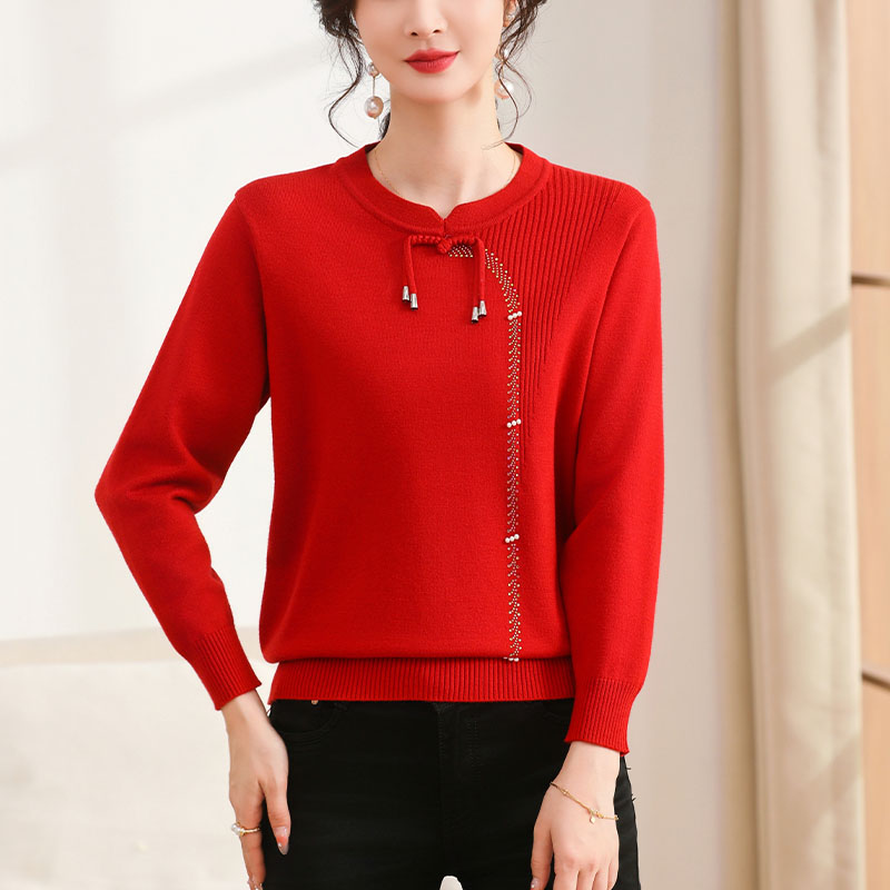 打底衫 盘扣针织上衣服中年女洋气毛衣中老年秋冬季 新中式 妈妈秋装
