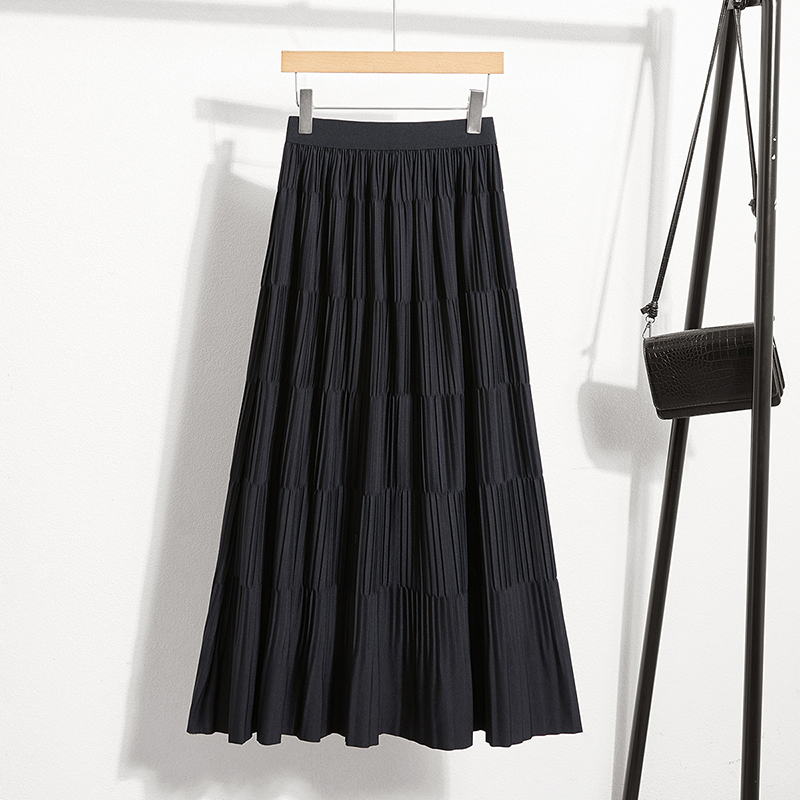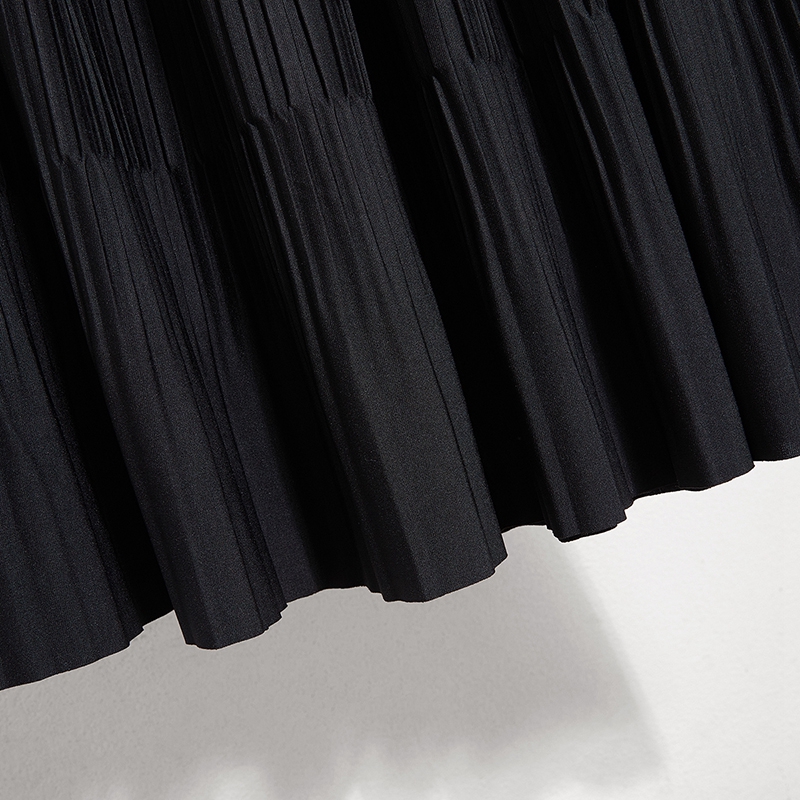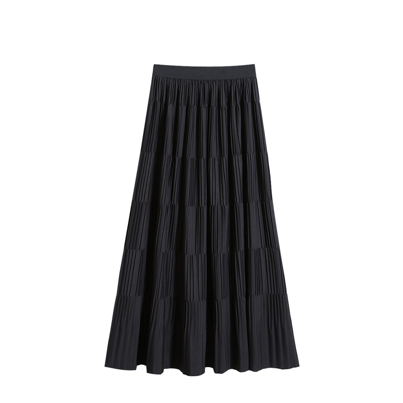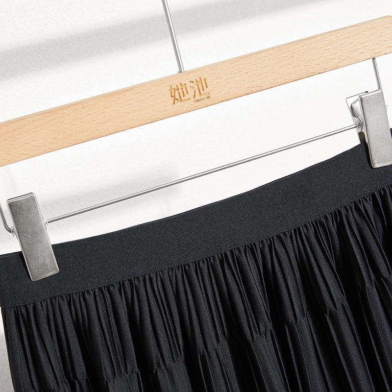 气质松紧腰压褶垂感中长款 女装 A字裙 新款 她池拼接半身裙2025秋装