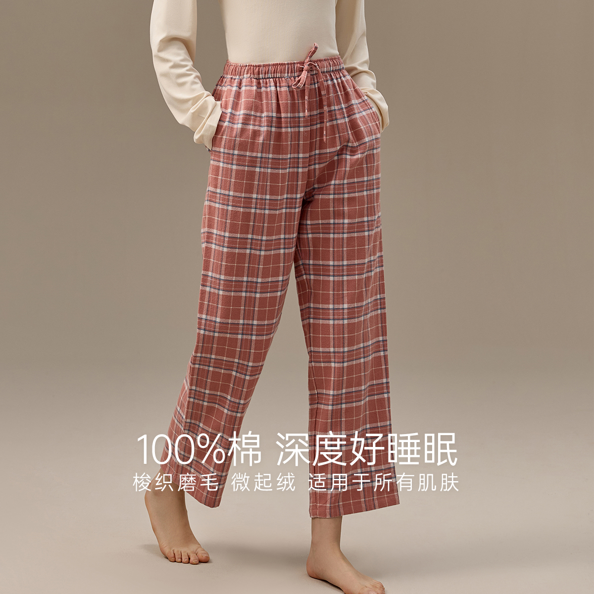 女款 格纹可外穿家居裤 秋季 单裤 纯棉长裤 顶瓜瓜睡裤