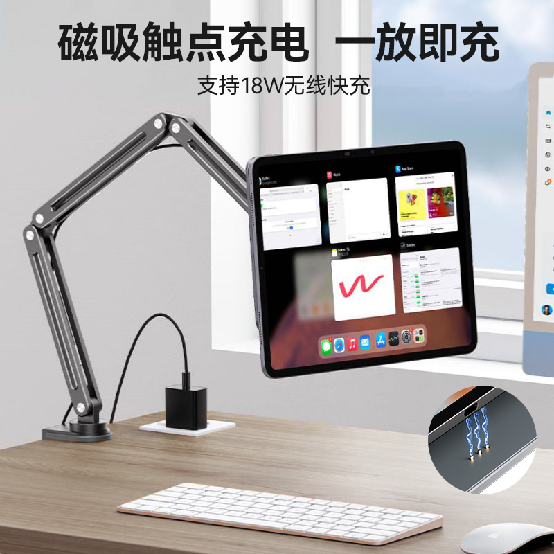 苹果平板电脑支撑架桌面办公画画铝合金懒人可升降支架 air专用磁吸充电架子25年新款 KUXIU iPad平板支架pro