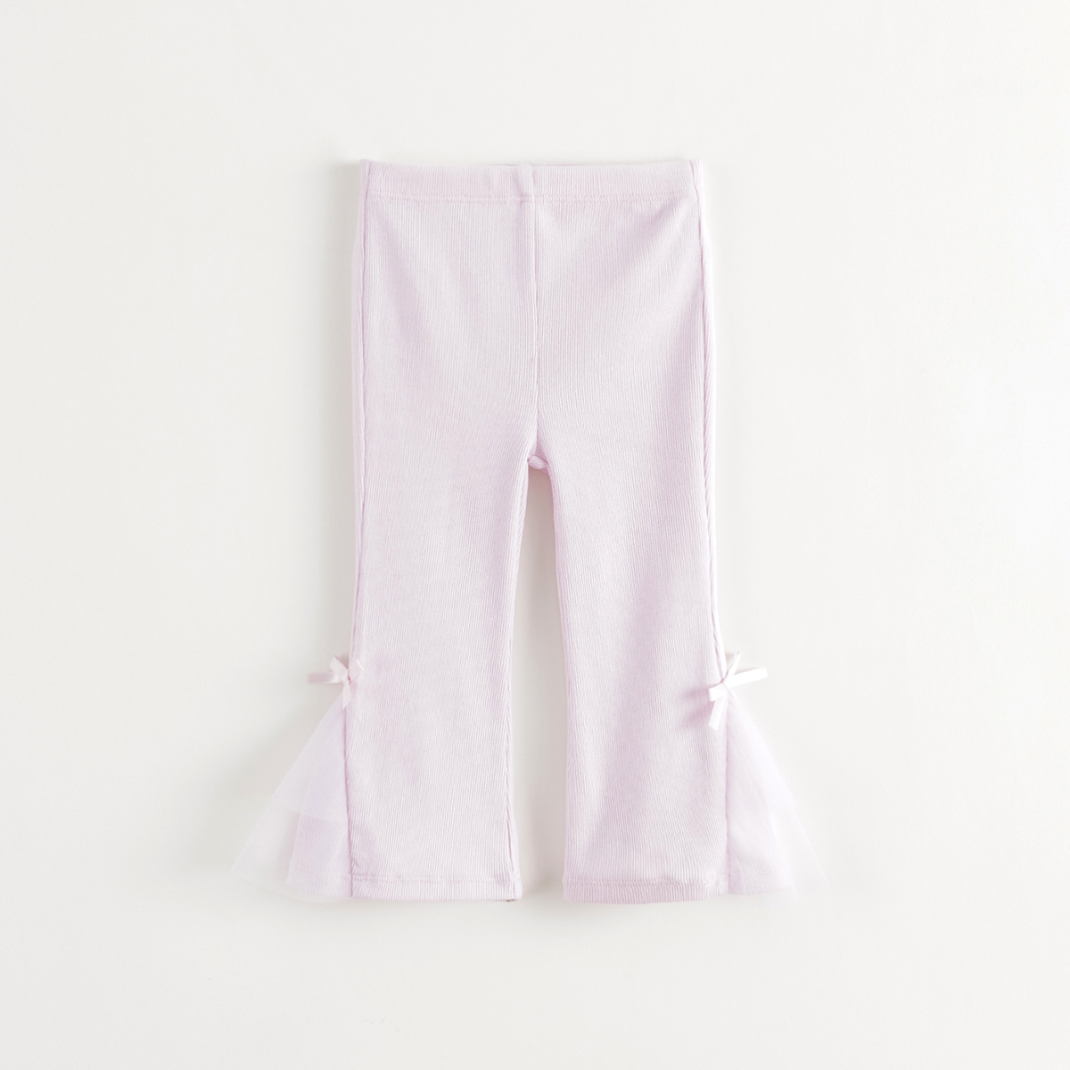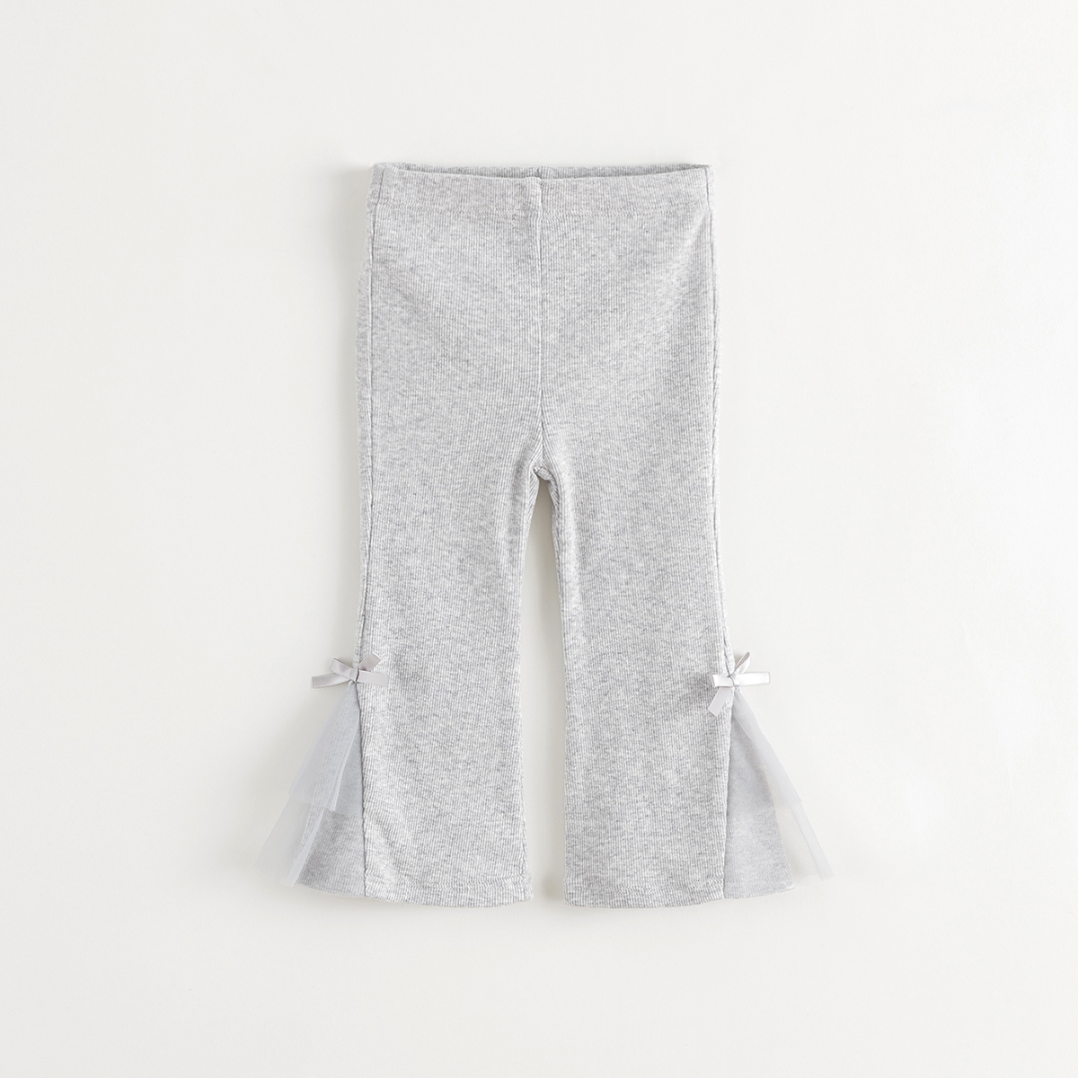 新款 子宝宝秋装 241307 儿童裤 马克珍妮女童弹力罗纹网纱打底喇叭裤