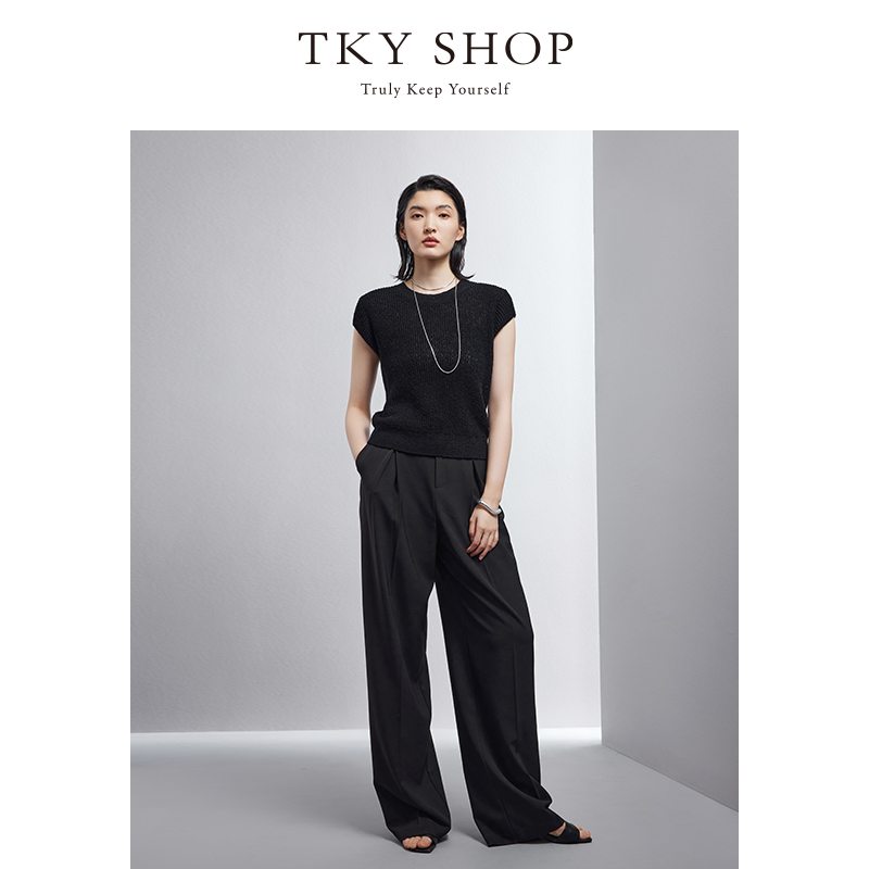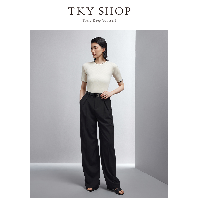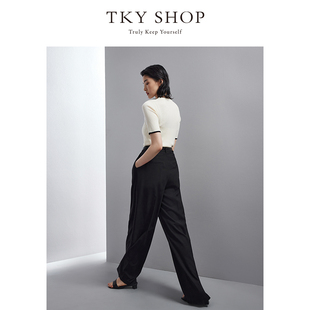 女春秋新款 休闲直筒慵懒松弛感裤 高腰垂感窄版 裤 子 西装 黑色阔腿裤