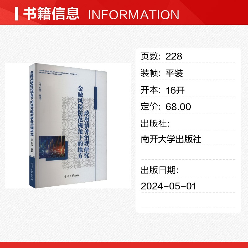 励志 社 王红涛 南开大学出版 图书籍 新华书店正版 中国经济史经管 中国经济 编 地方政府债务治理研究 金融风险防范视角下