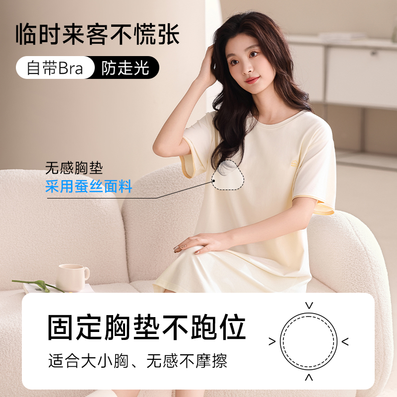 猫人棉绸睡裙女带胸垫夏季 莫代尔家居服 凉感简约甜美冰丝睡衣短袖